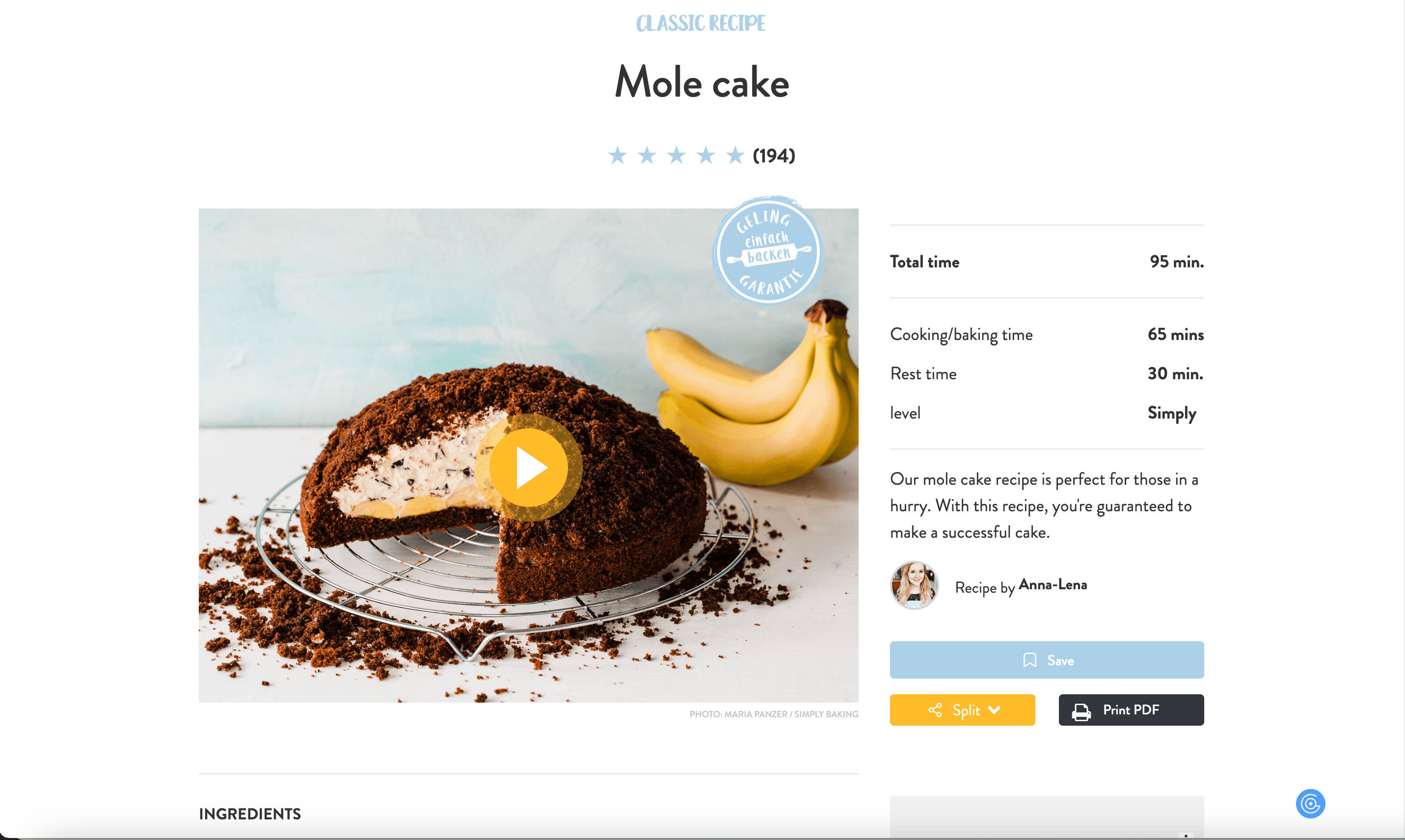 - Go to the destination page, for example: Maulwurfkuchen mit Banane Recipe.