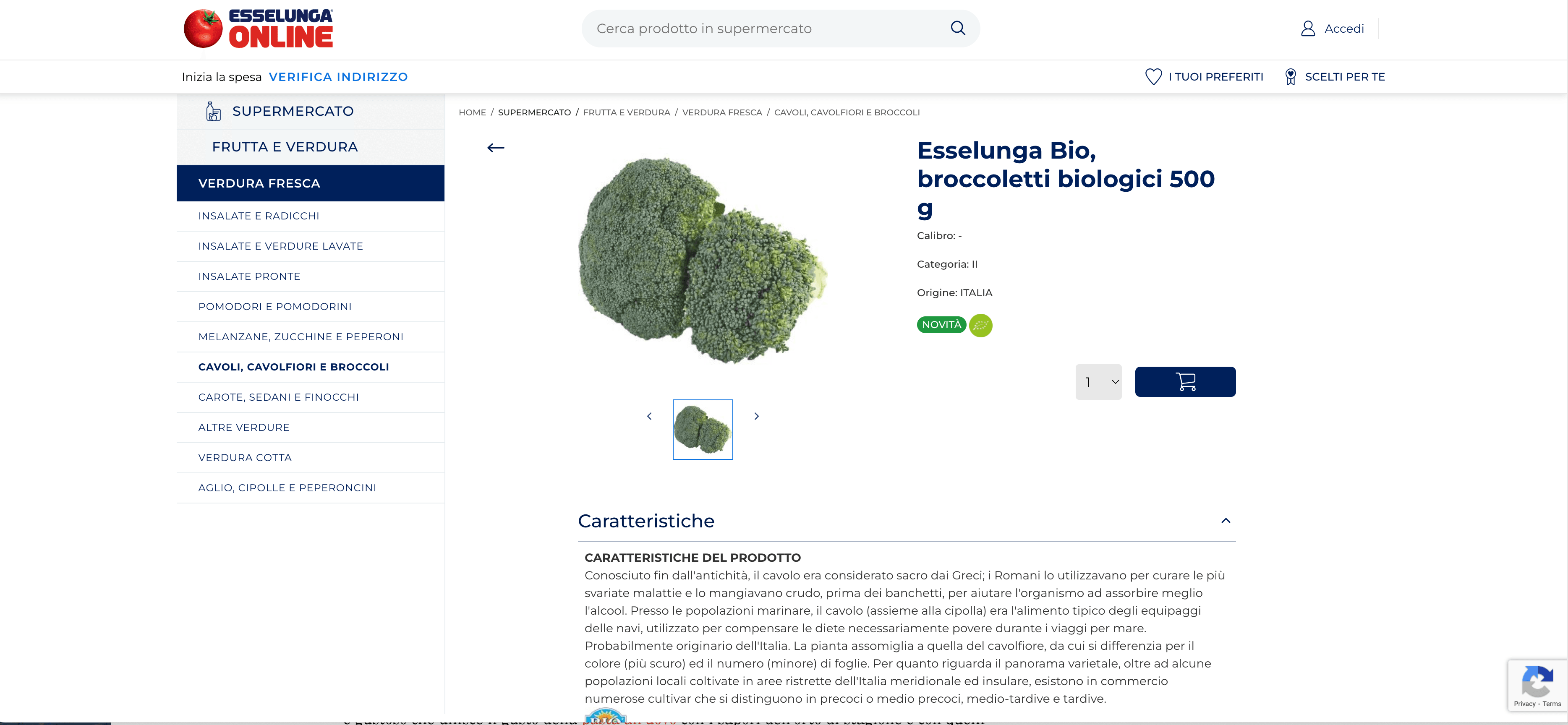 - Go to the destination page, for example: Esselunga Product Details - Broccoletti Biologici.