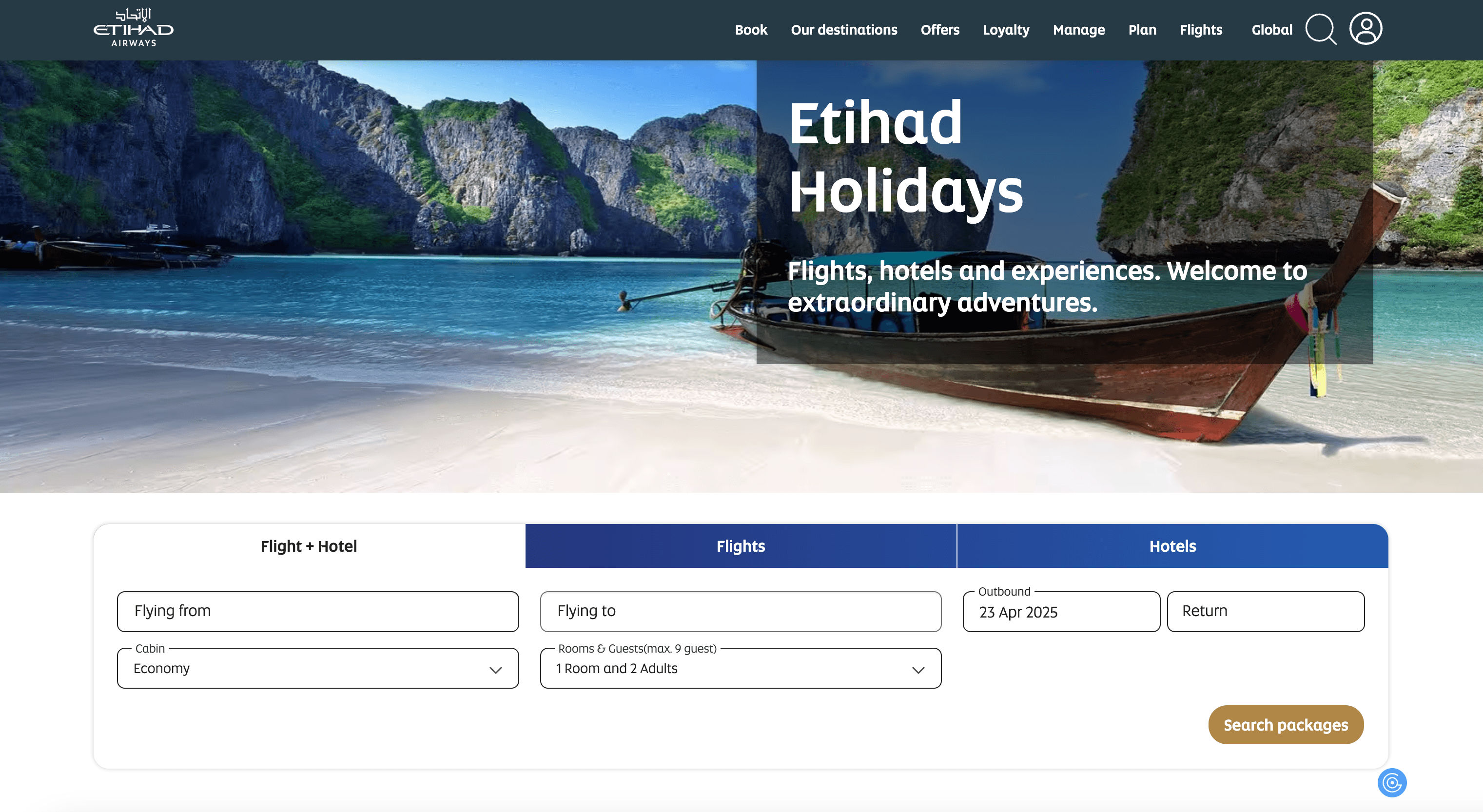 - Navigate to Etihad Holidays Hotel or Flight Search Page: Go to the hotel search results or flight search results page.