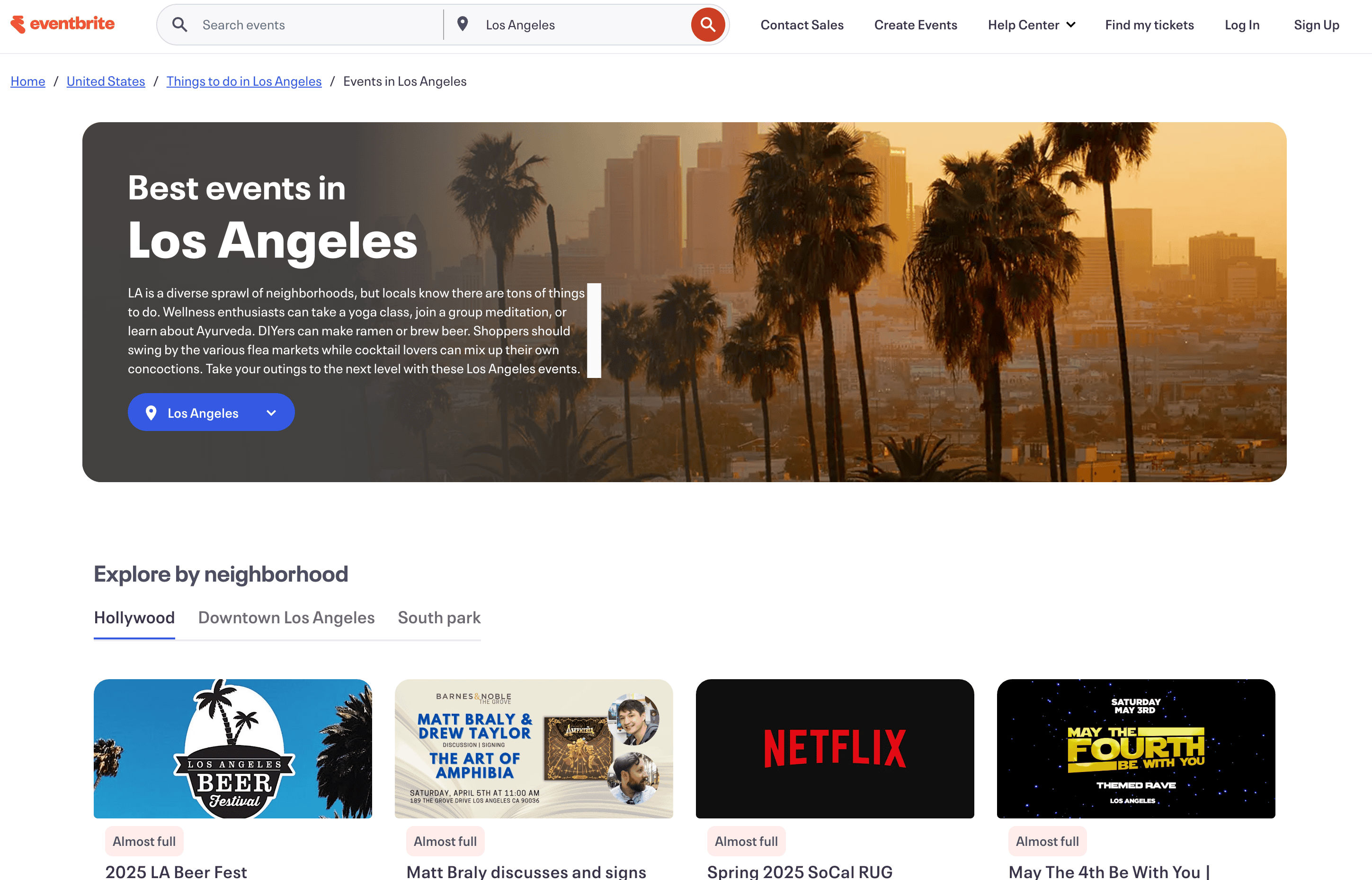 - Go to the destination page, for example: Eventbrite Event Search Result.