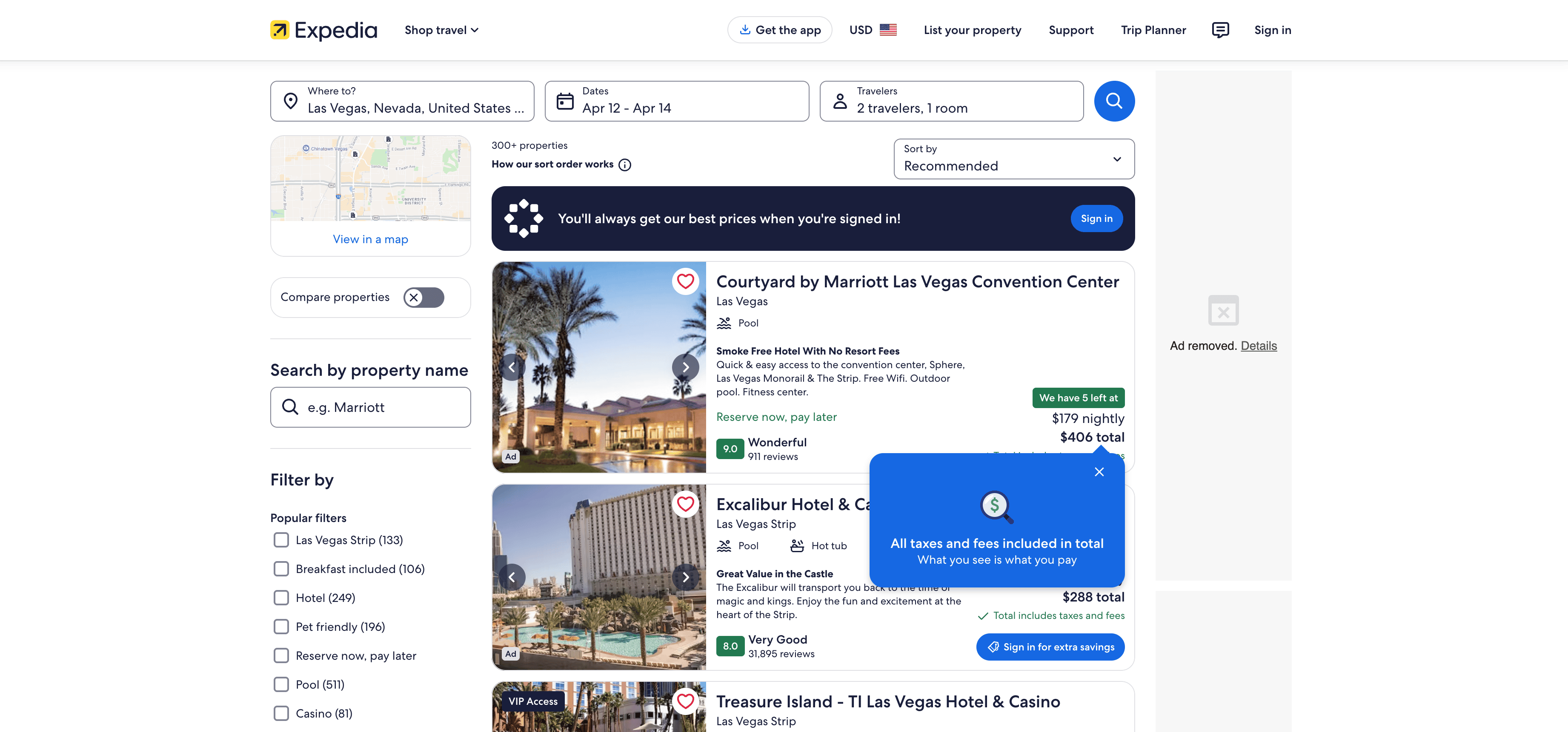 - Go to the destination page, for example: Expedia Hotel Search Result Page.