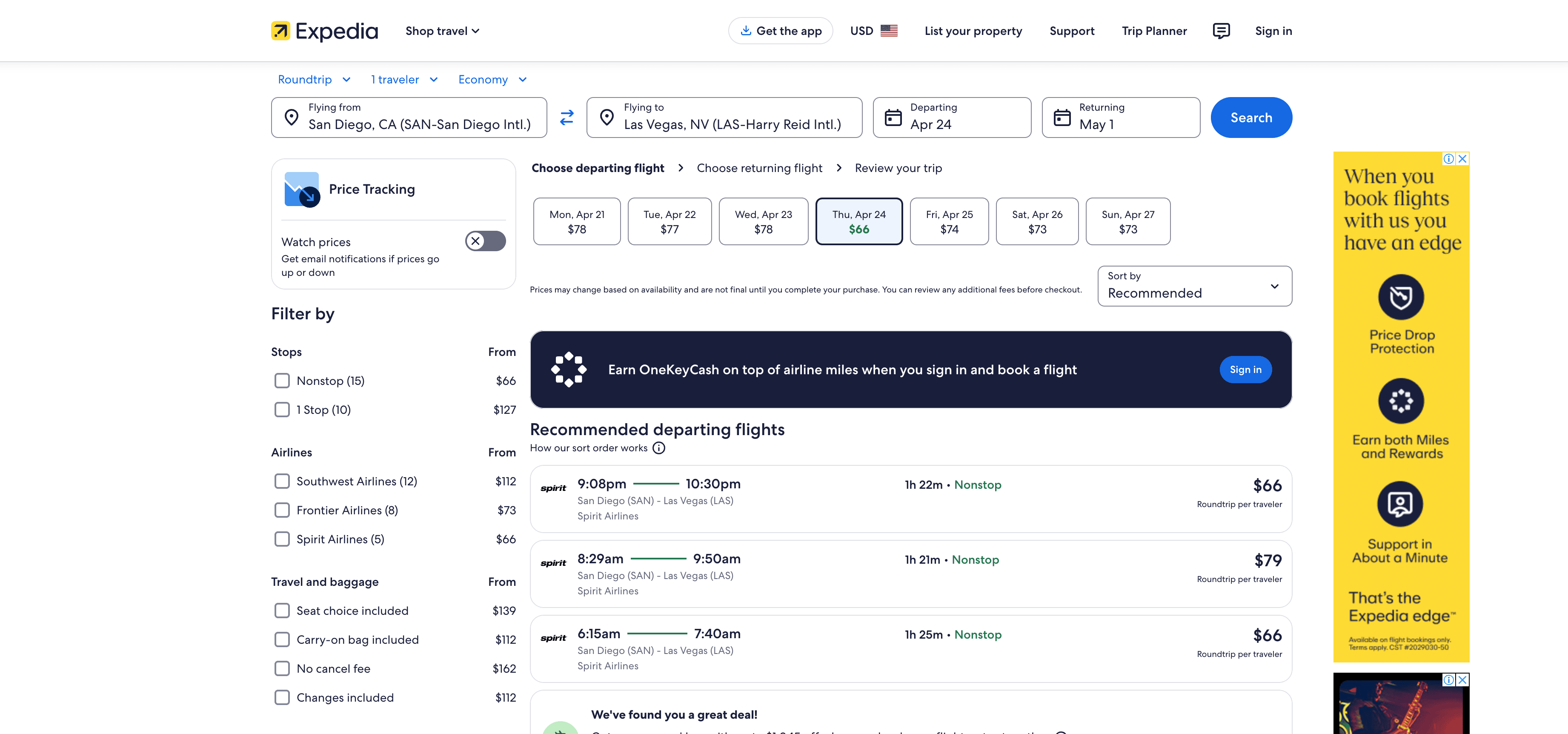 - Go to the destination page, for example: Expedia Flight Search Result Page.