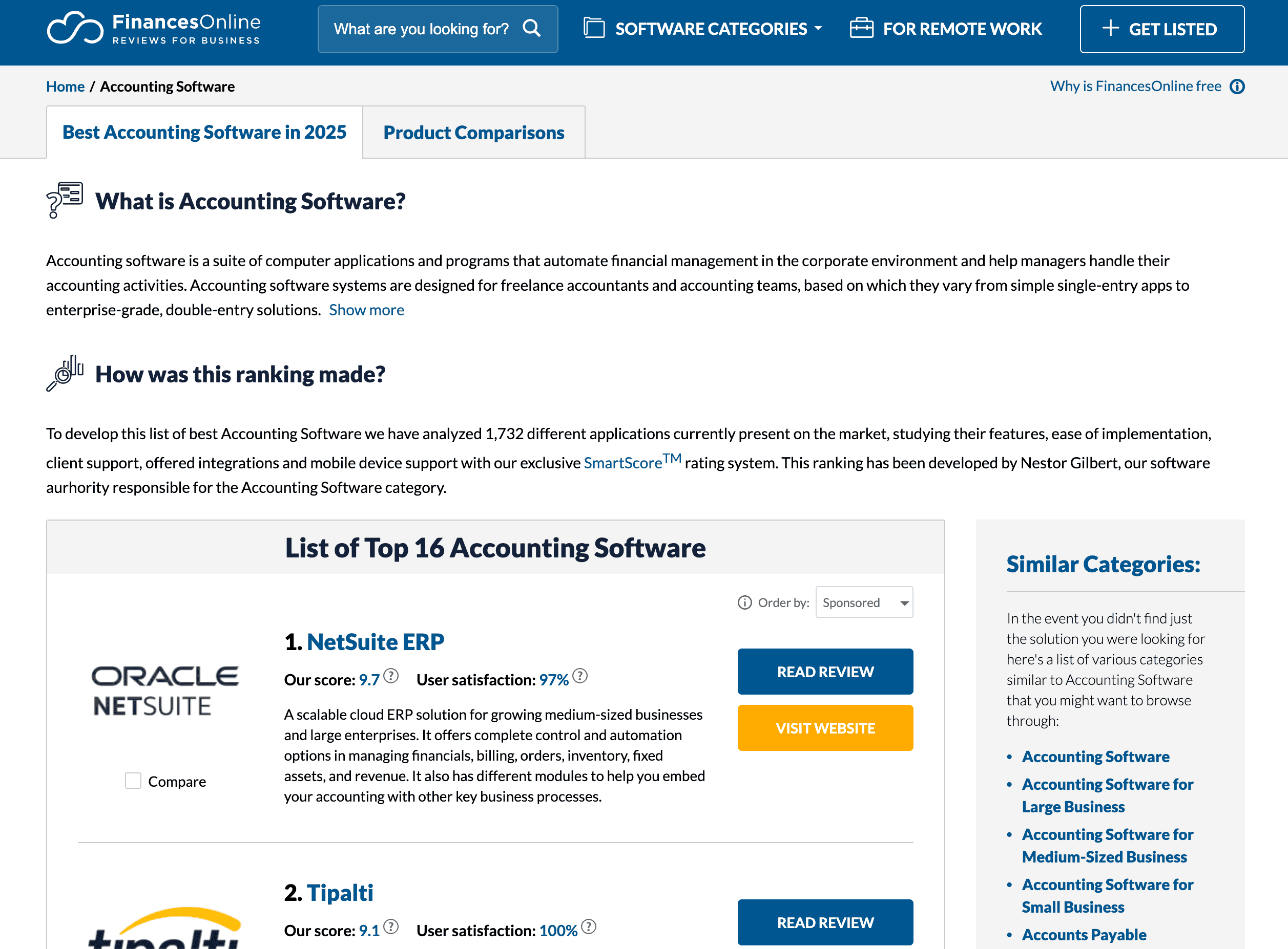 - Navigate to the Software Search Result or Software Details Page: Go to the FinancesOnline page you want to scrape.