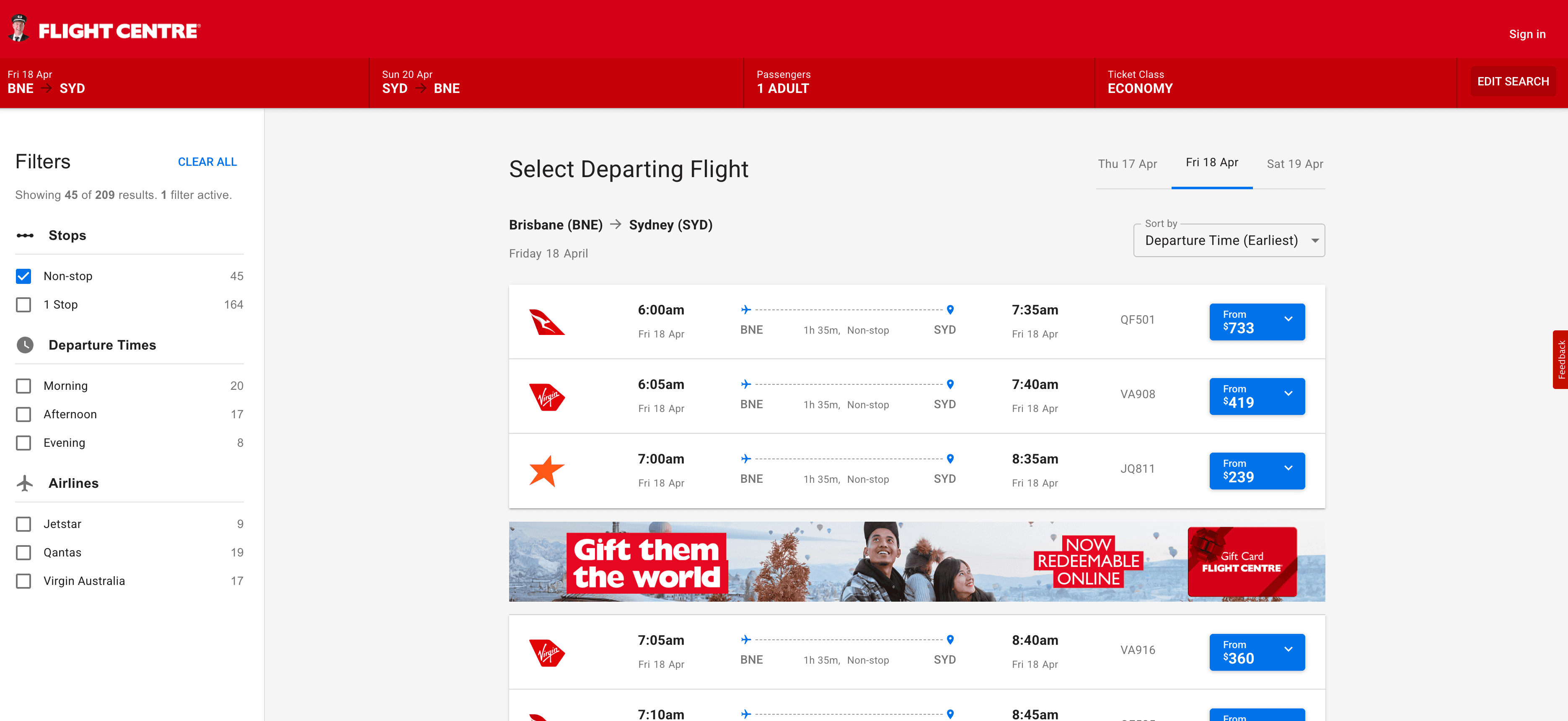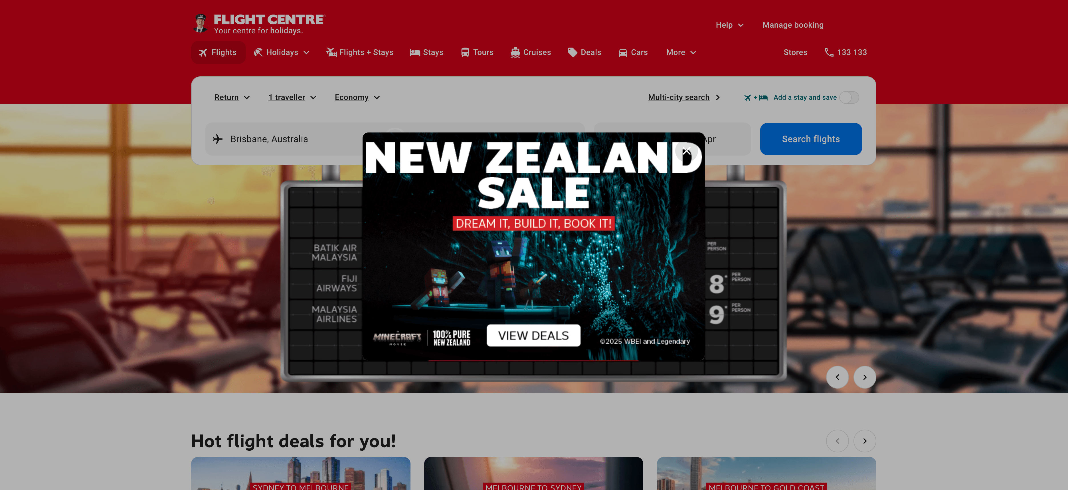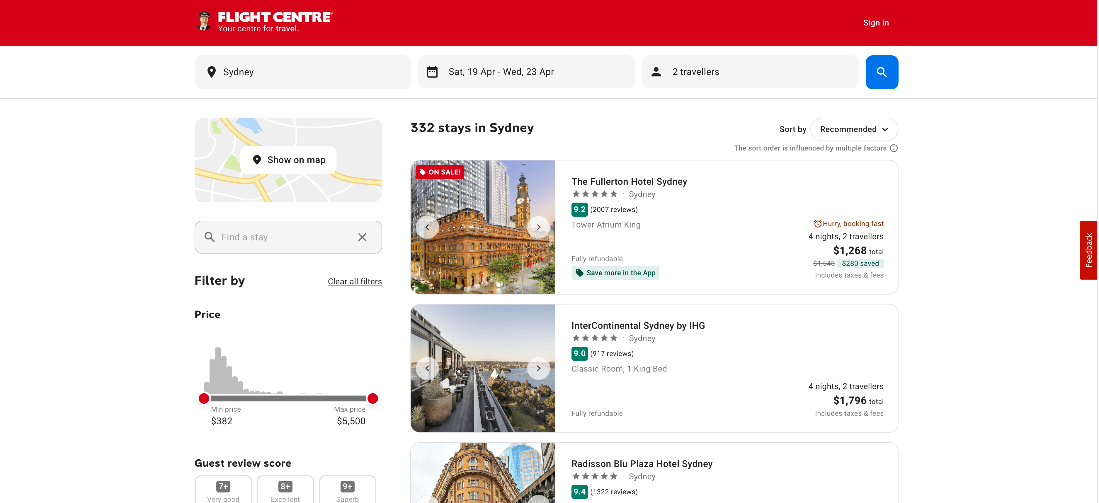 - Navigate to Flight Centre Search Results: Go to either the Flight Search Result Page or Hotel Search Result Page.