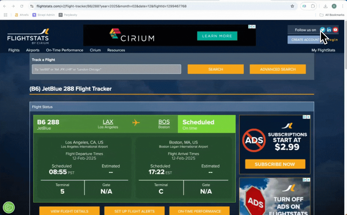 The Flight Status Scraper enables you to extract real-time flight tracking information from platforms like FlightStats.