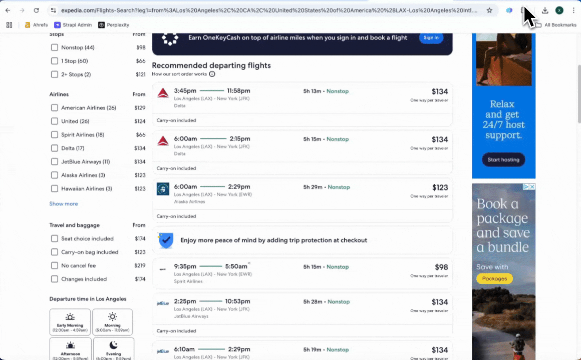 The Expedia Flight Price Scraper allows you to extract detailed flight pricing and schedule information from Expedia.