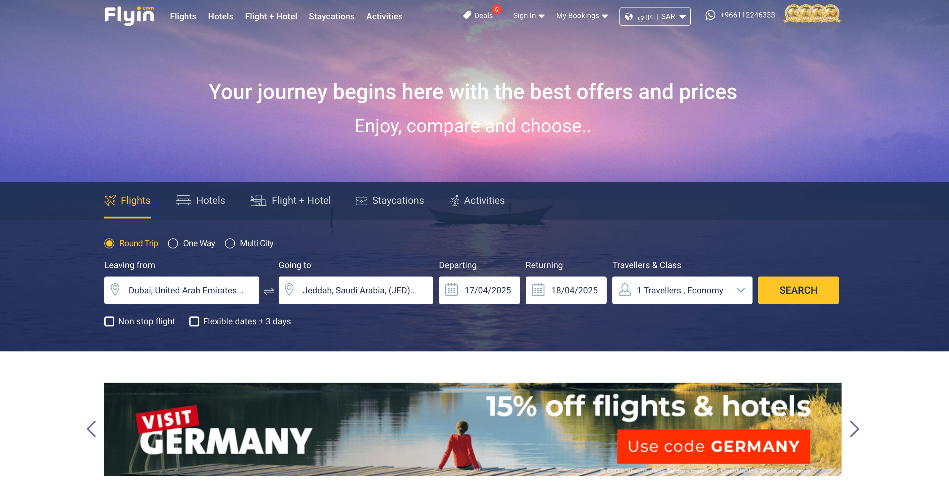 - Navigate to Flyin’s Flights or Hotels Search Result Page: Go to the relevant Flights or Hotels search result page.