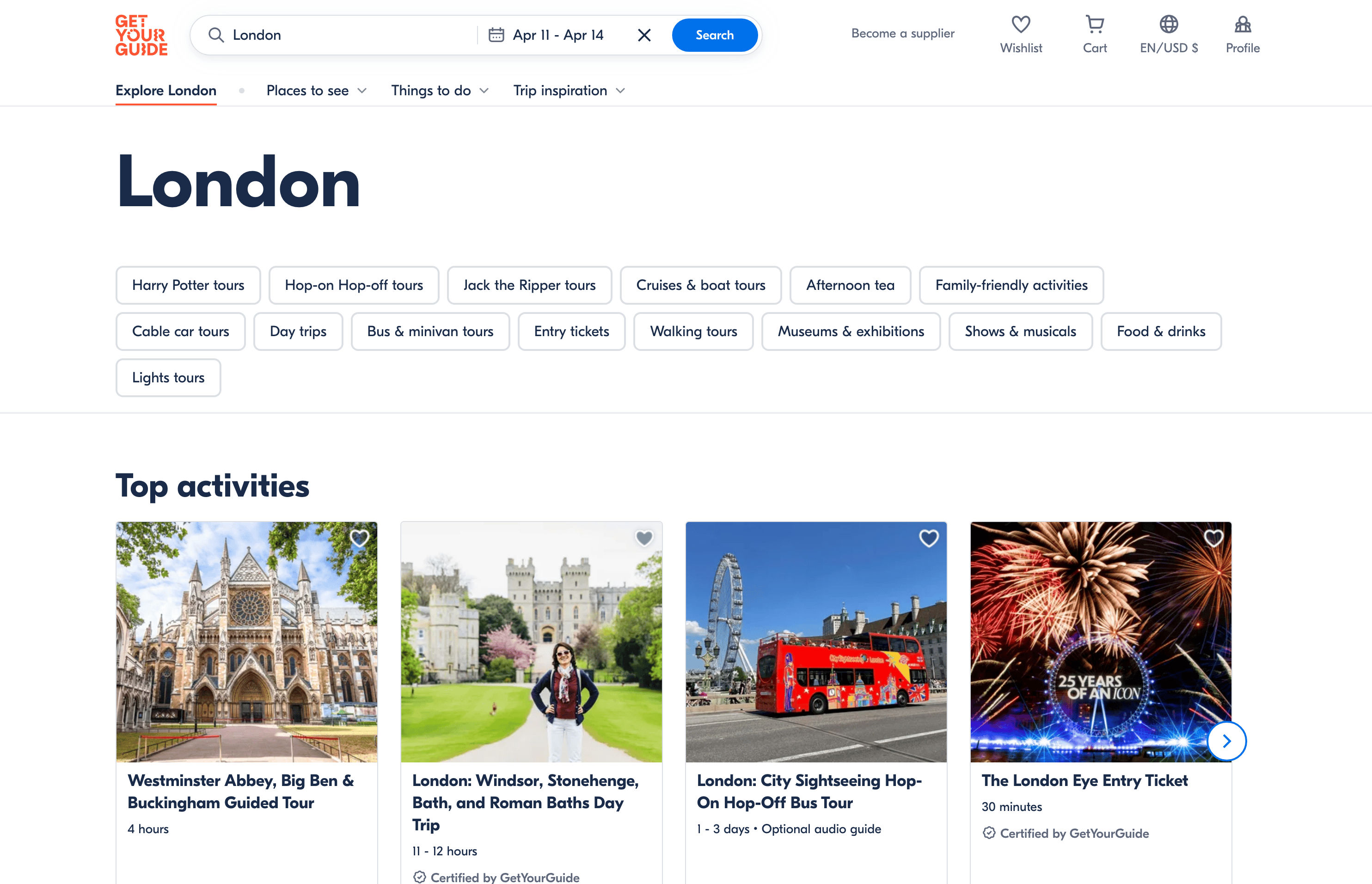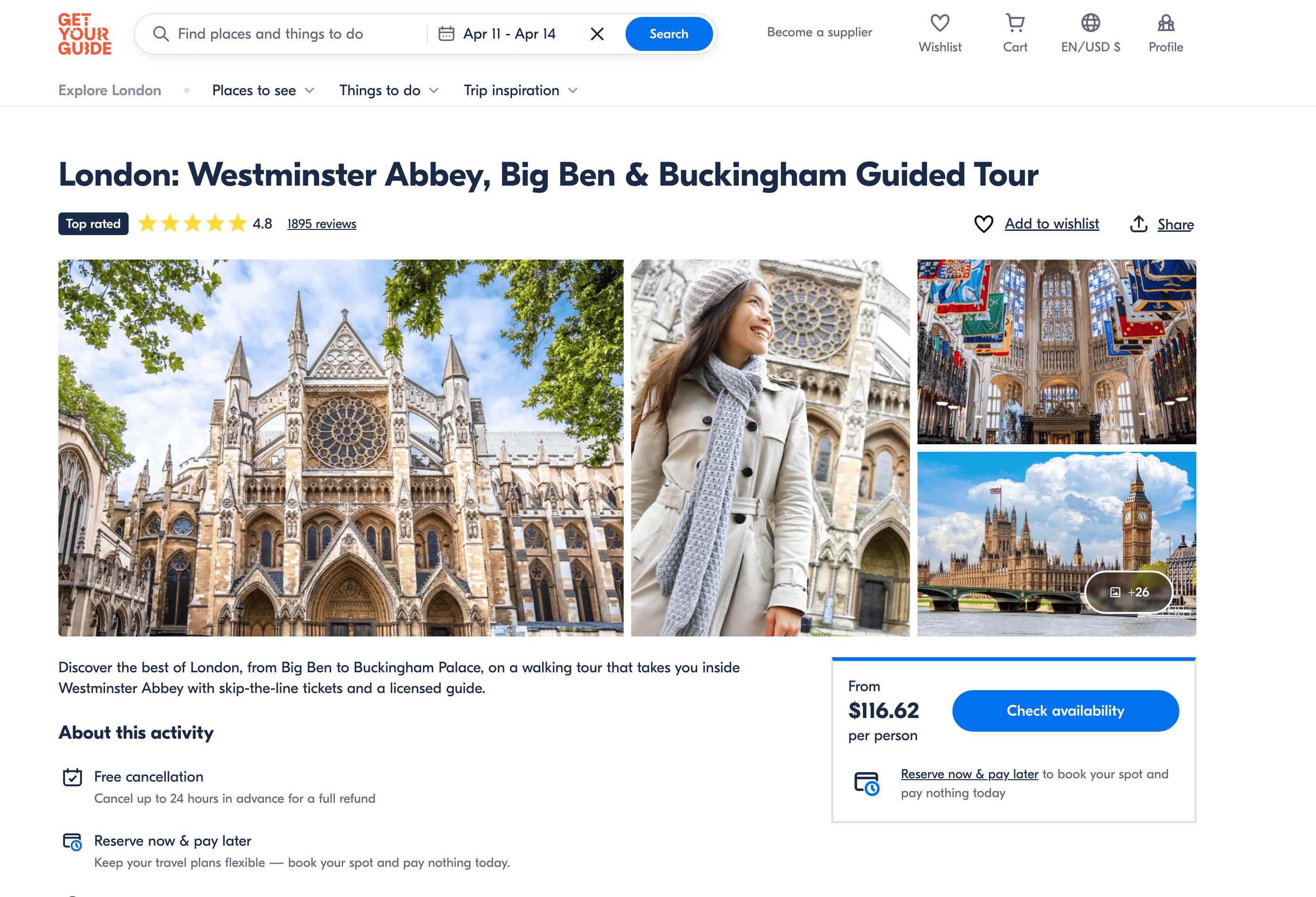 - Go to the destination page, for example: GetYourGuide Activity Details.