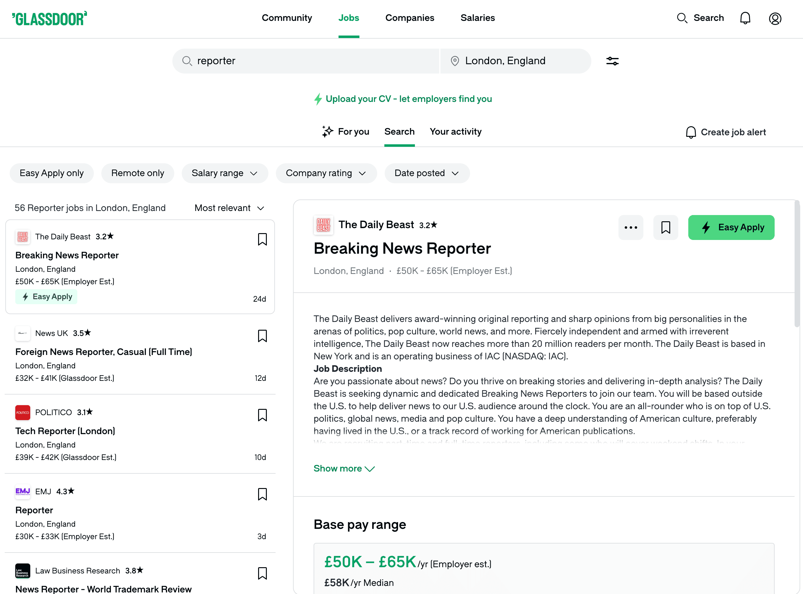 - Go to the destination page, for example: Glassdoor Job Details.