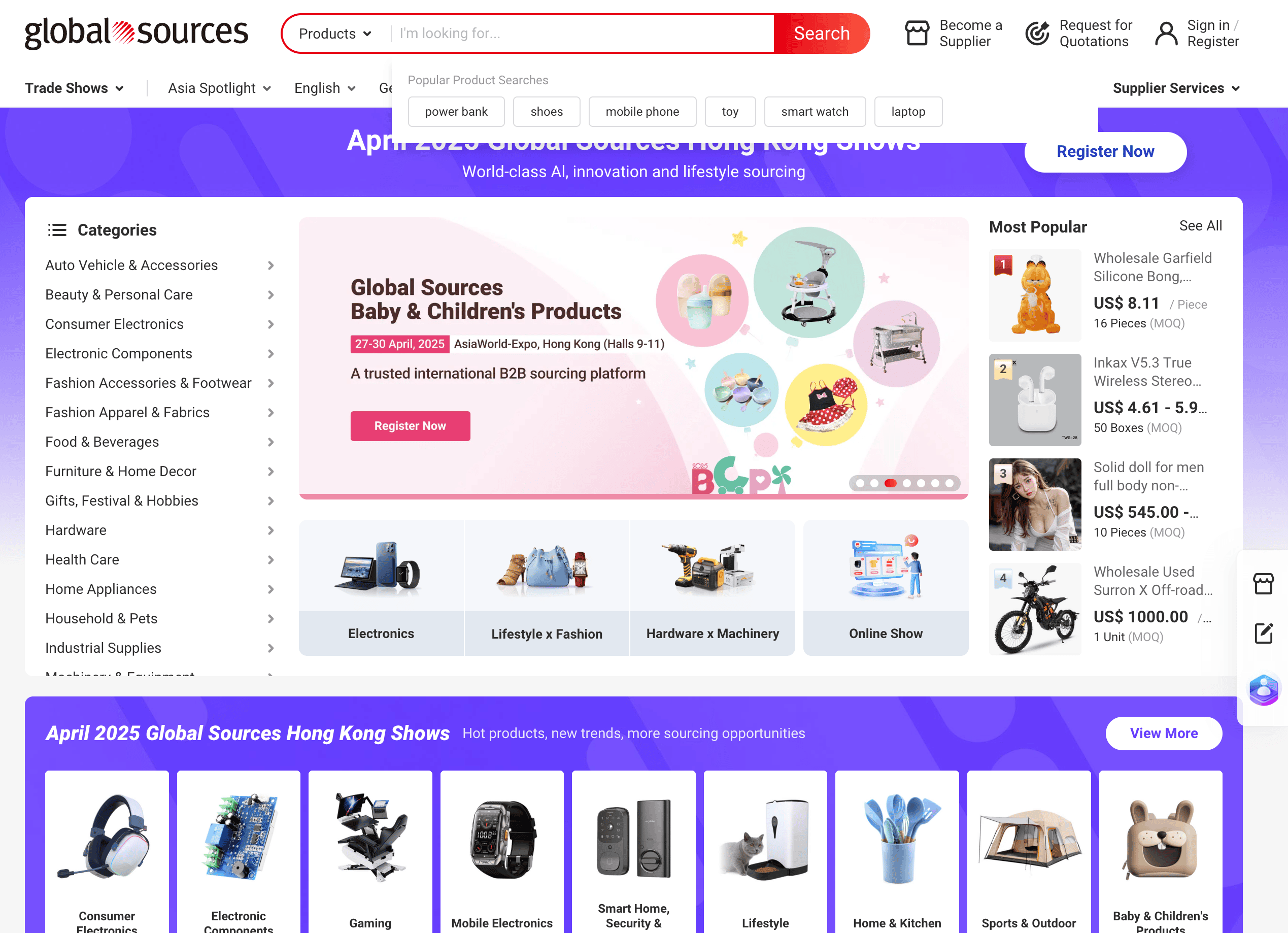 - Go to the destination page, for example: Global Sources Product Search Result.