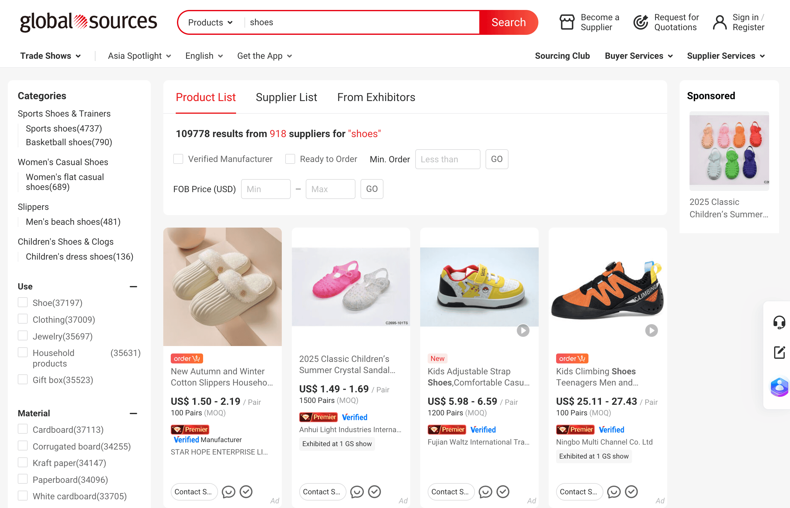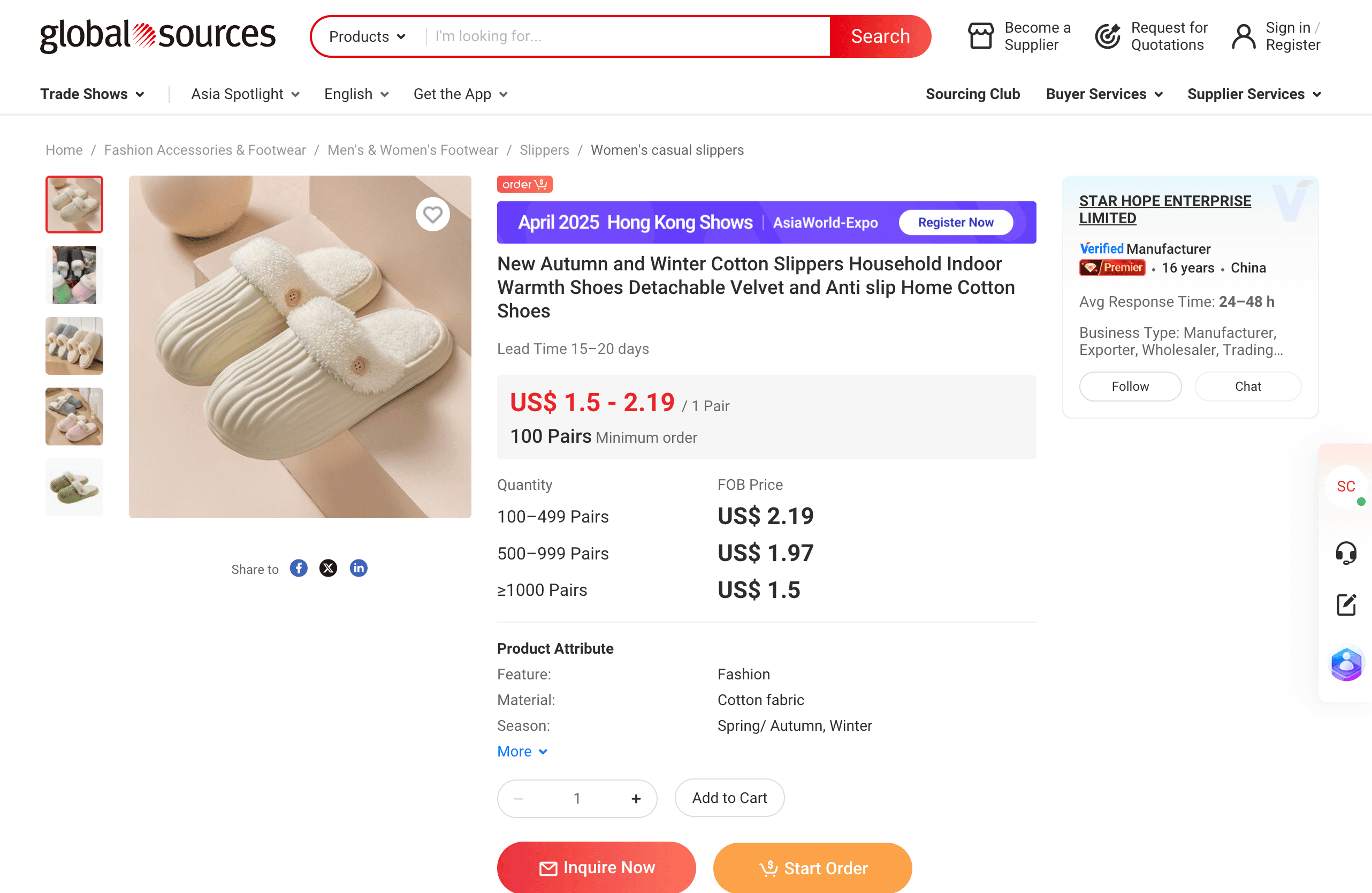 - Navigate to the Product Search Result or Product Details Page: Go to the Global Sources page you want to scrape.