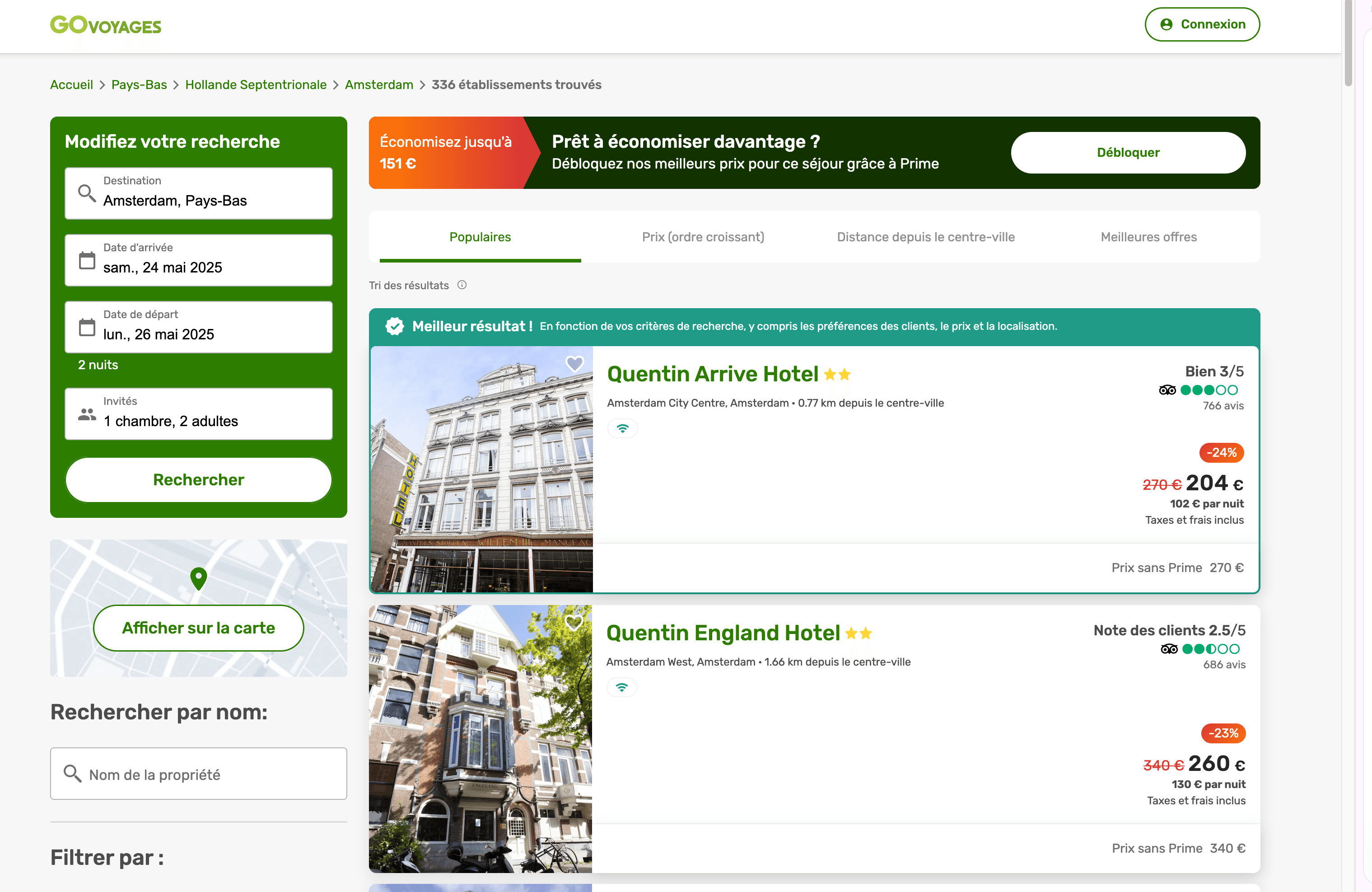 - Go to the GO Voyages hotel search results page.