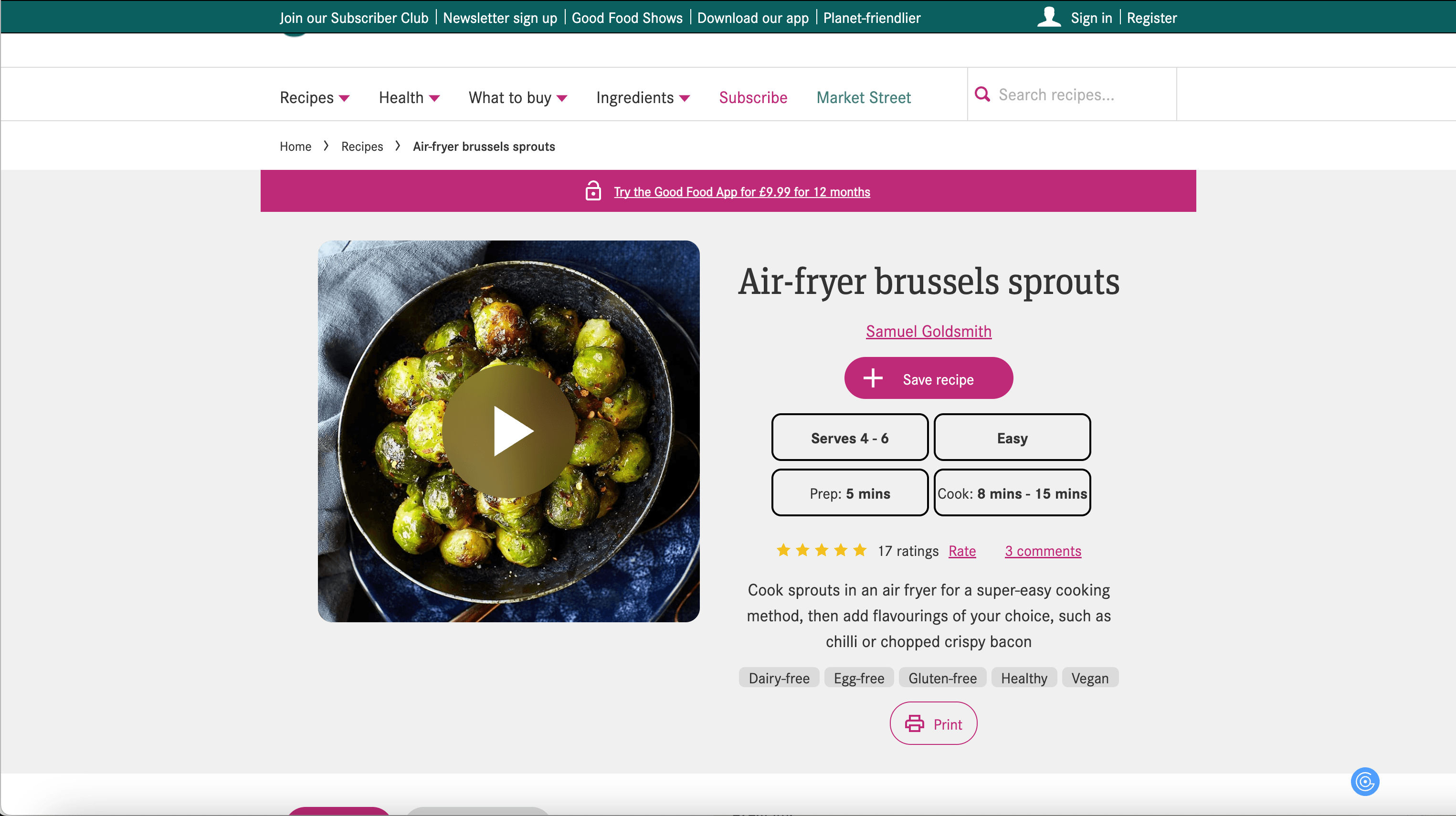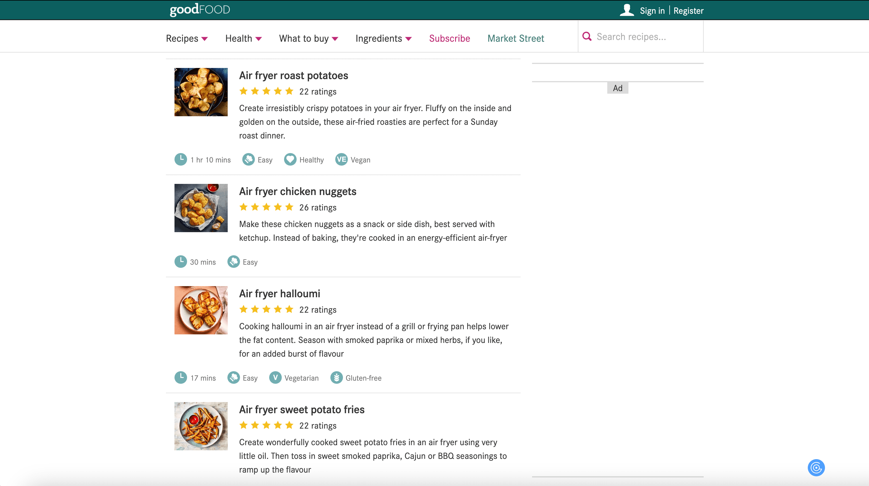 - Navigate to Good Food Recipe Listings or Details Page: Go to any Good Food collection or individual recipe page.