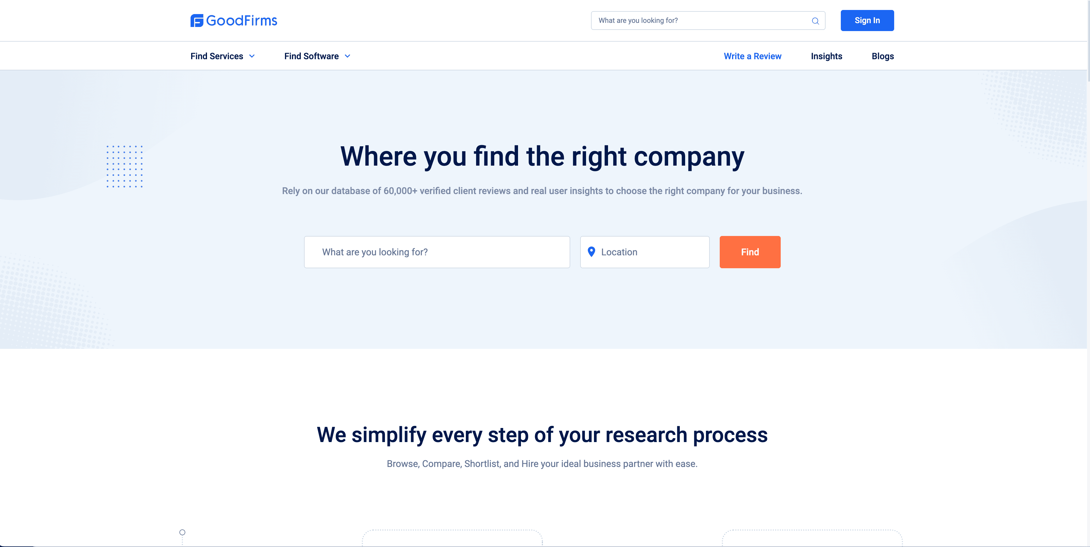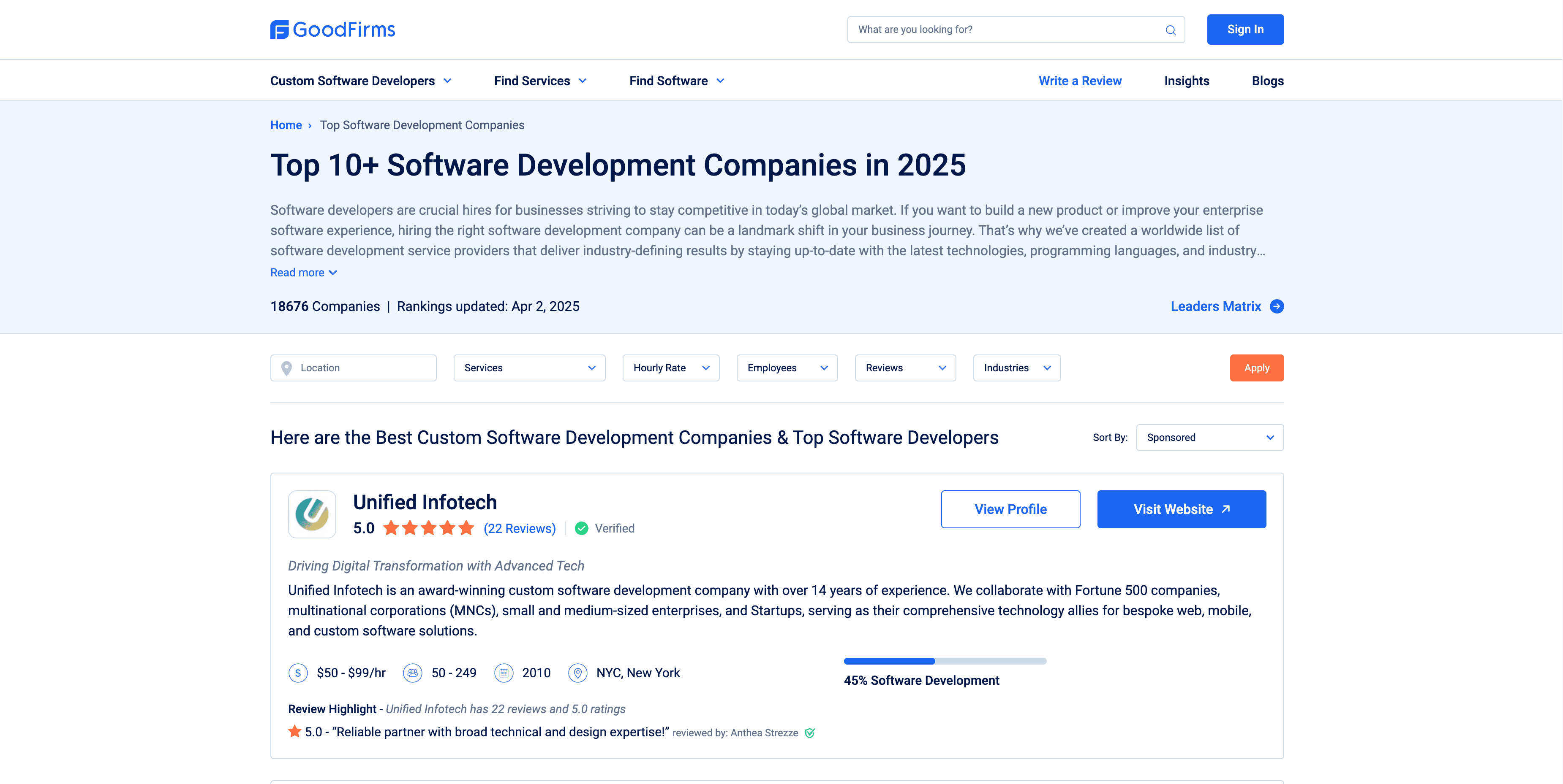 - Go to the destination page, for example: GoodFirms Company Profile Page.