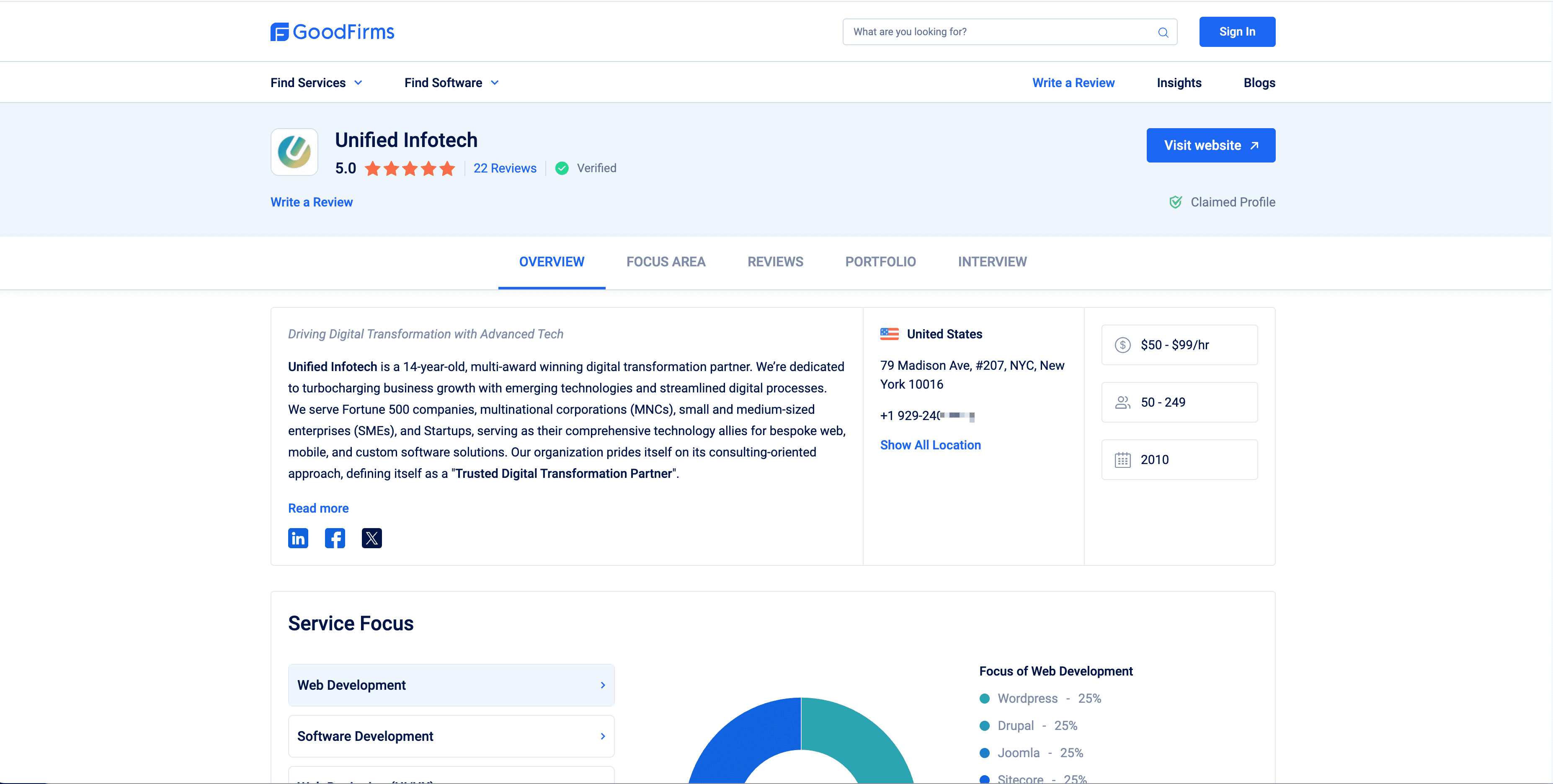 - Go to the destination page, for example: GoodFirms Company Profile Details Page.