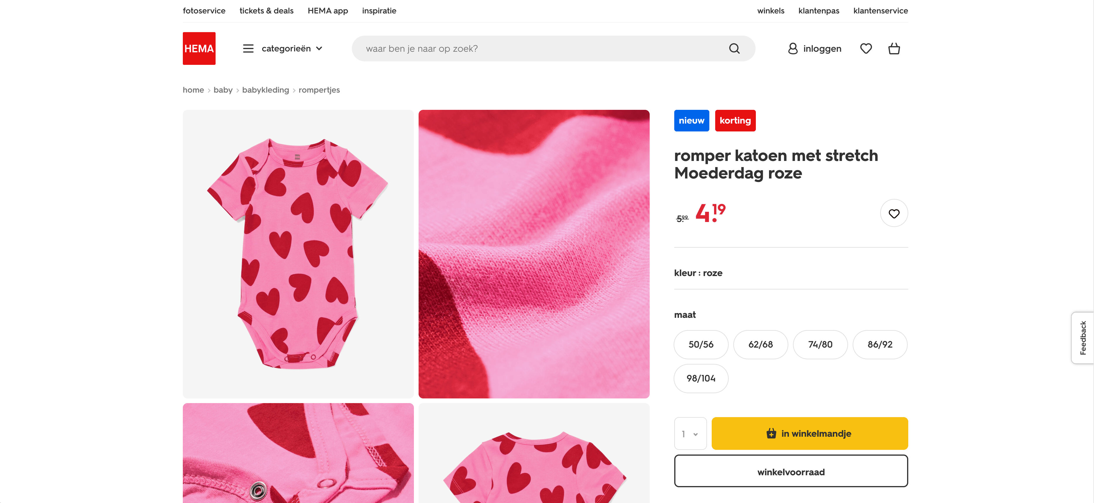 - Go to the destination page, for example: HEMA Romper Product Page.