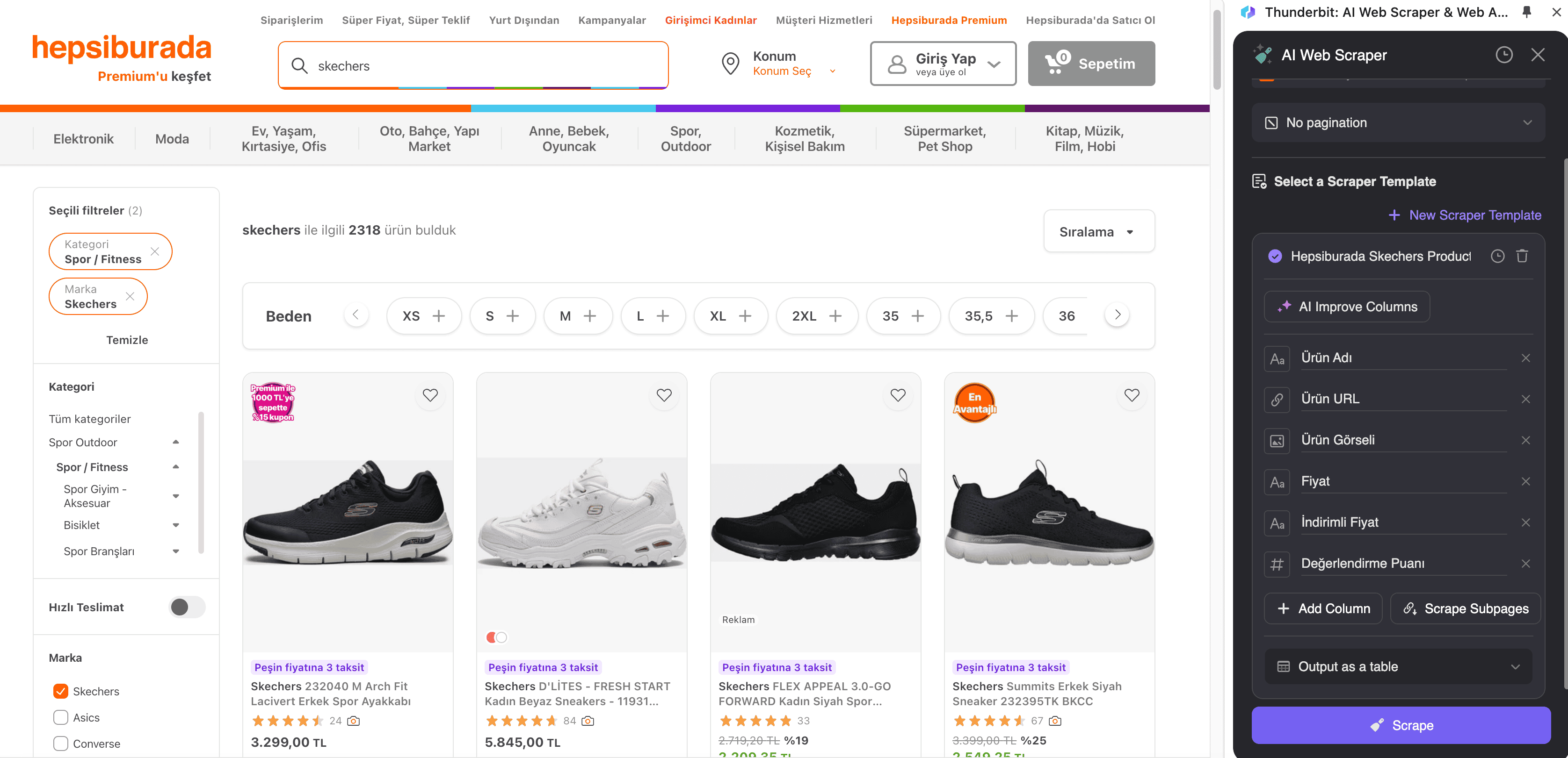 The Scrapebit AI-Powered Hepsiburada Scraper is your go-to tool for extracting product data from Hepsiburada, one of Turkey's largest e-commerce platforms. Whether you're a marketer, e-commerce professional, or researcher, this tool simplifies the process of gathering structured data from Hepsiburada's product listing and SKU pages. With Scrapebit's Chrome Extension, you can save time and focus on what matters most—analyzing and utilizing the data.