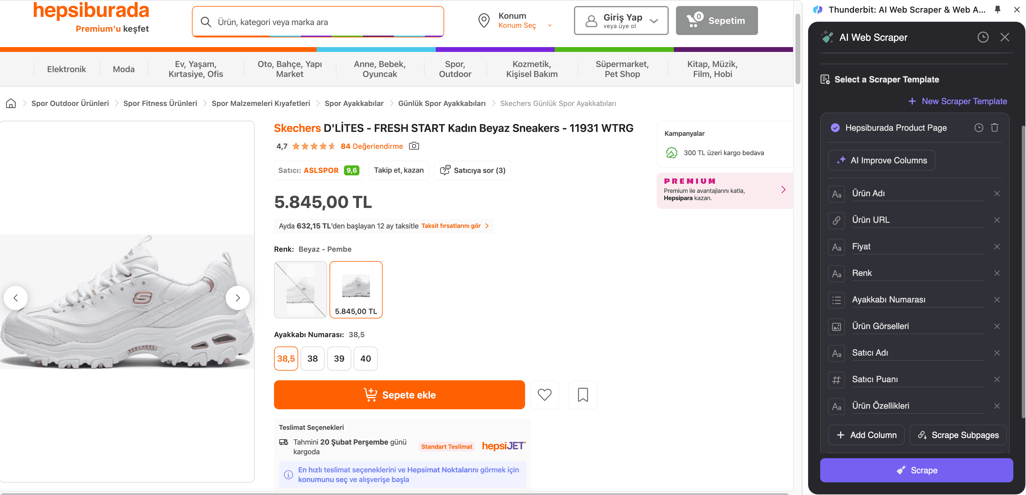 2. Scrape Hepsiburada SKU Page