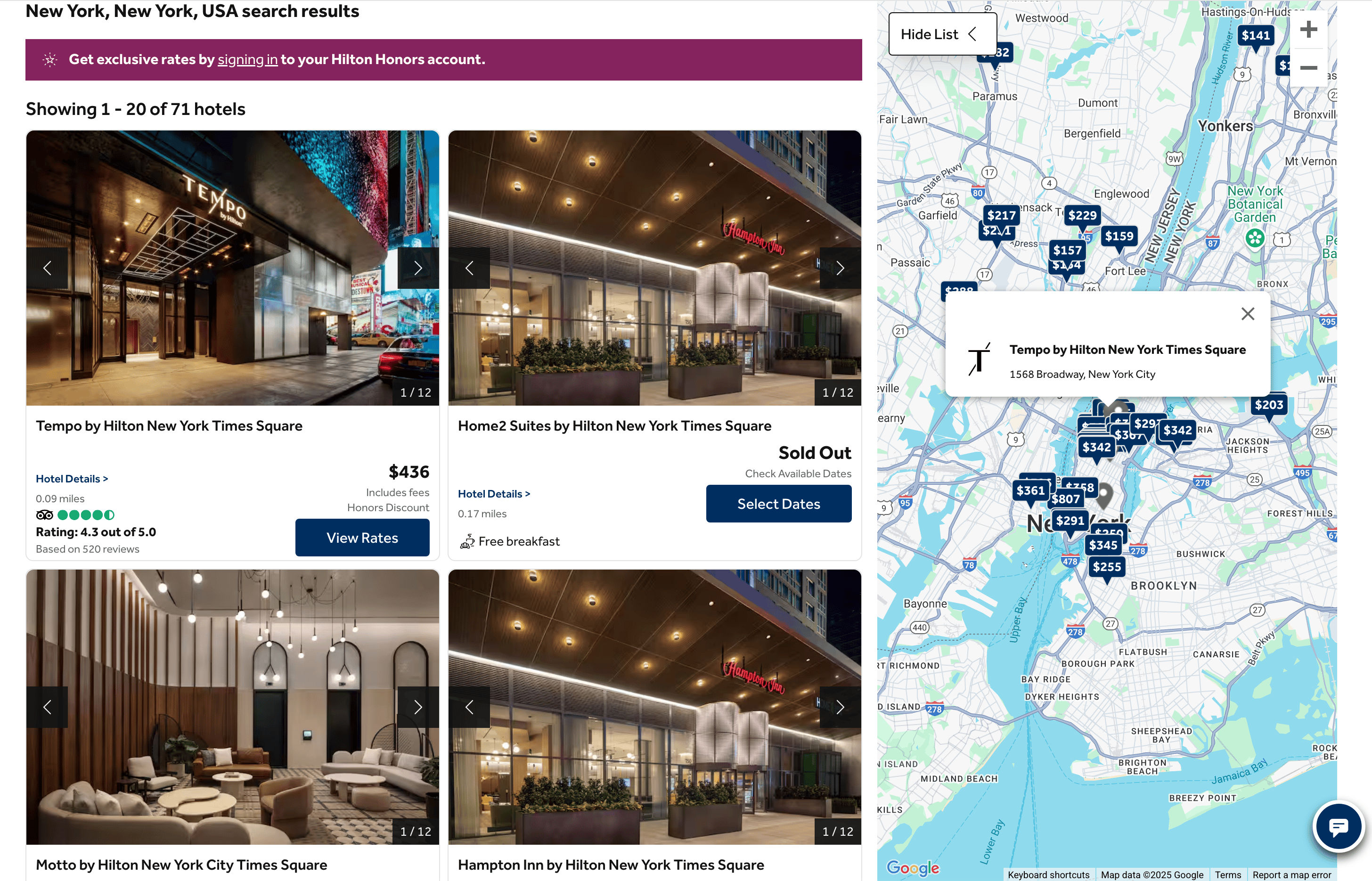- Go to the destination page, for example: Hilton Hotel Search Result.