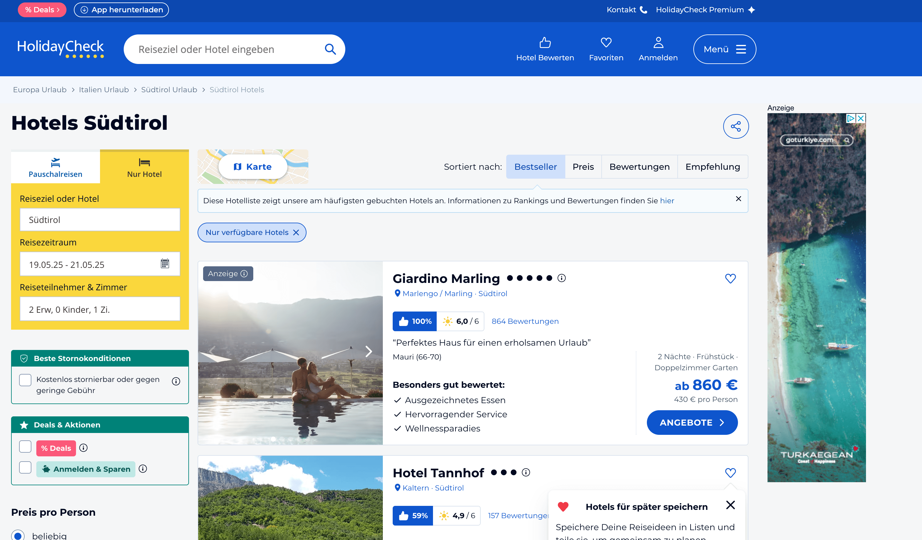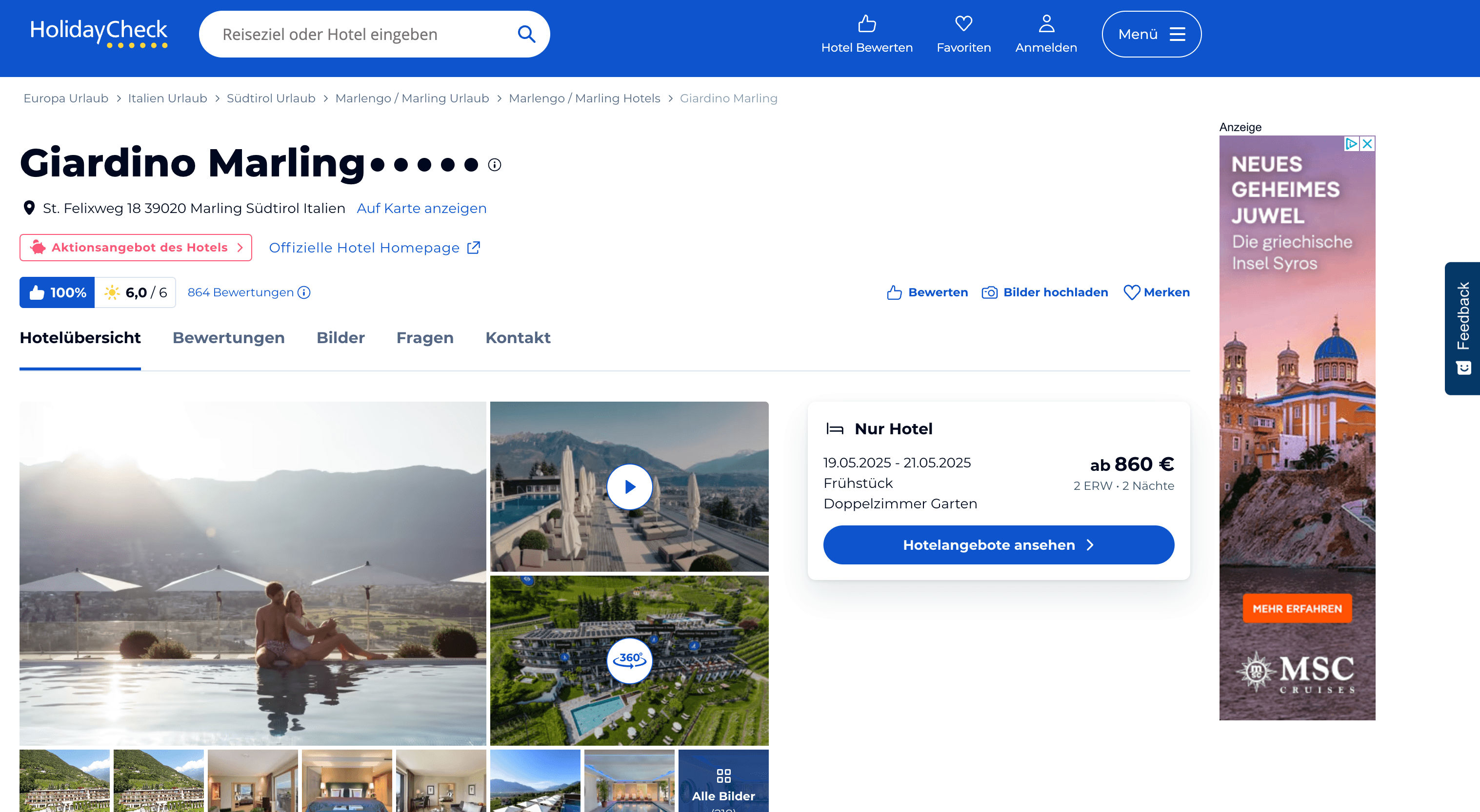 - Navigate to HolidayCheck Search or Hotel Details Page: Go to the hotel search results or hotel details page.