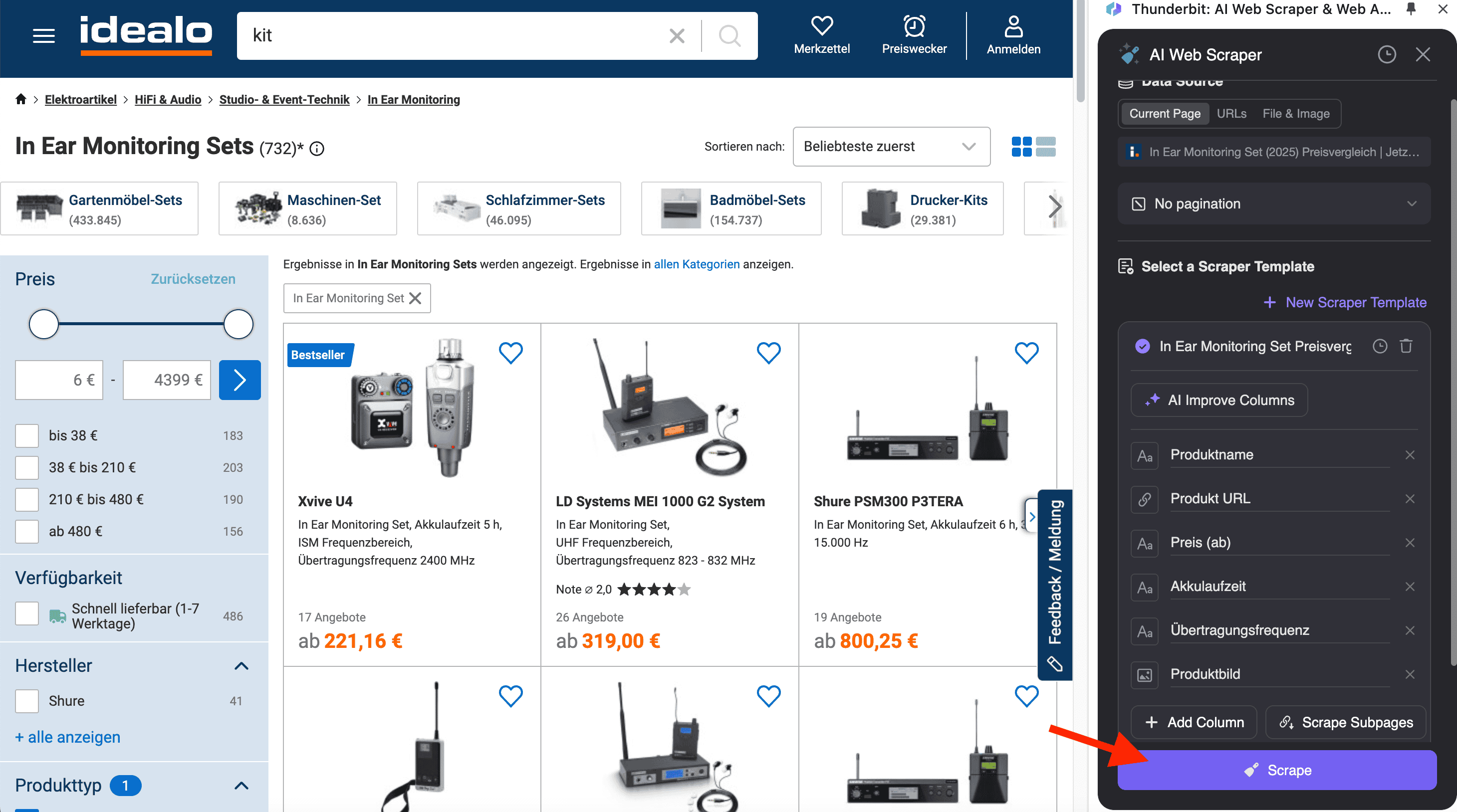 - Navigate to the Product Listing or SKU Page: Go to the Idealo page you want to scrape.