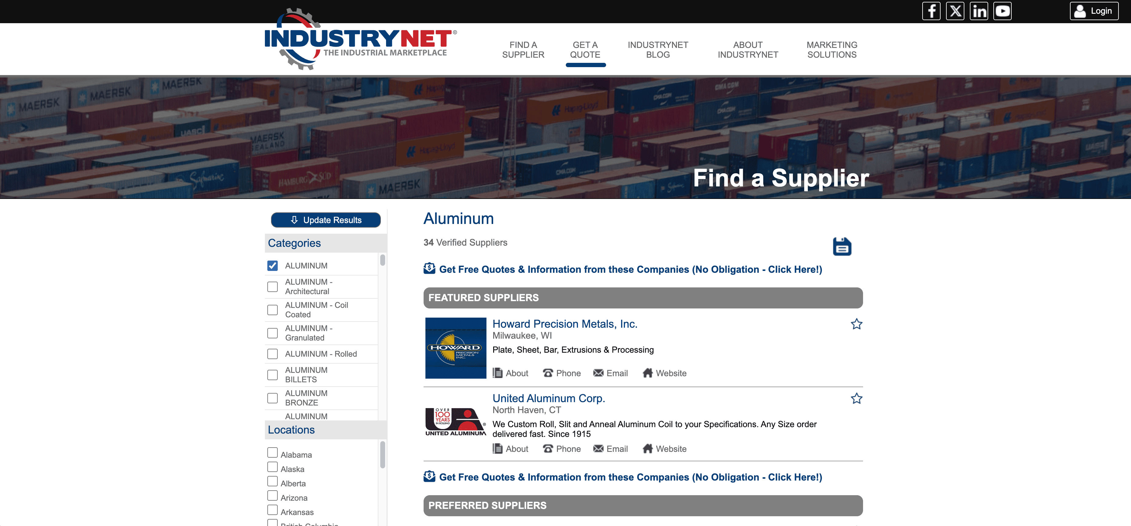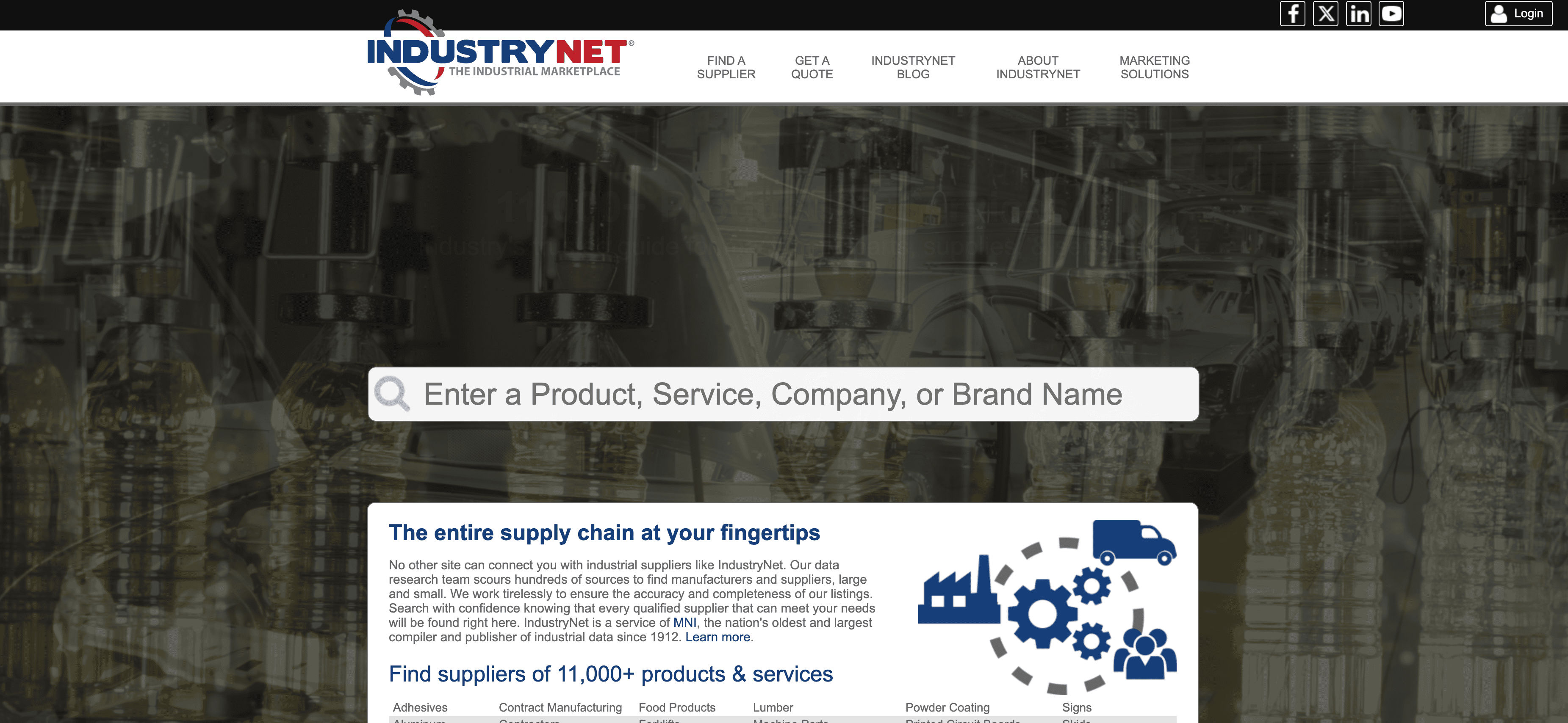 - Go to the destination page, for example: IndustryNet Product Supplier Listing.