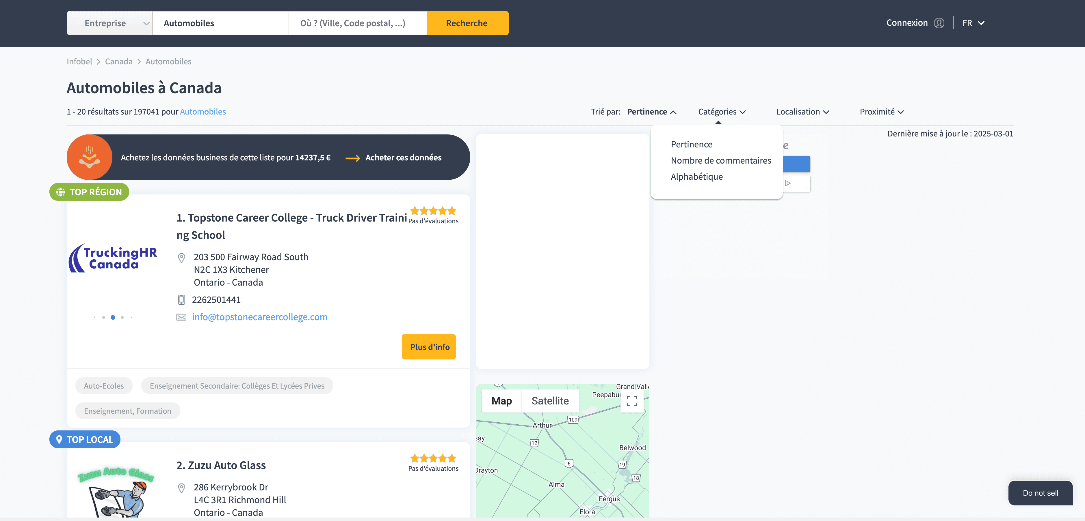 - Go to the destination page, for example: Infobel Business Listing Search Result Page.