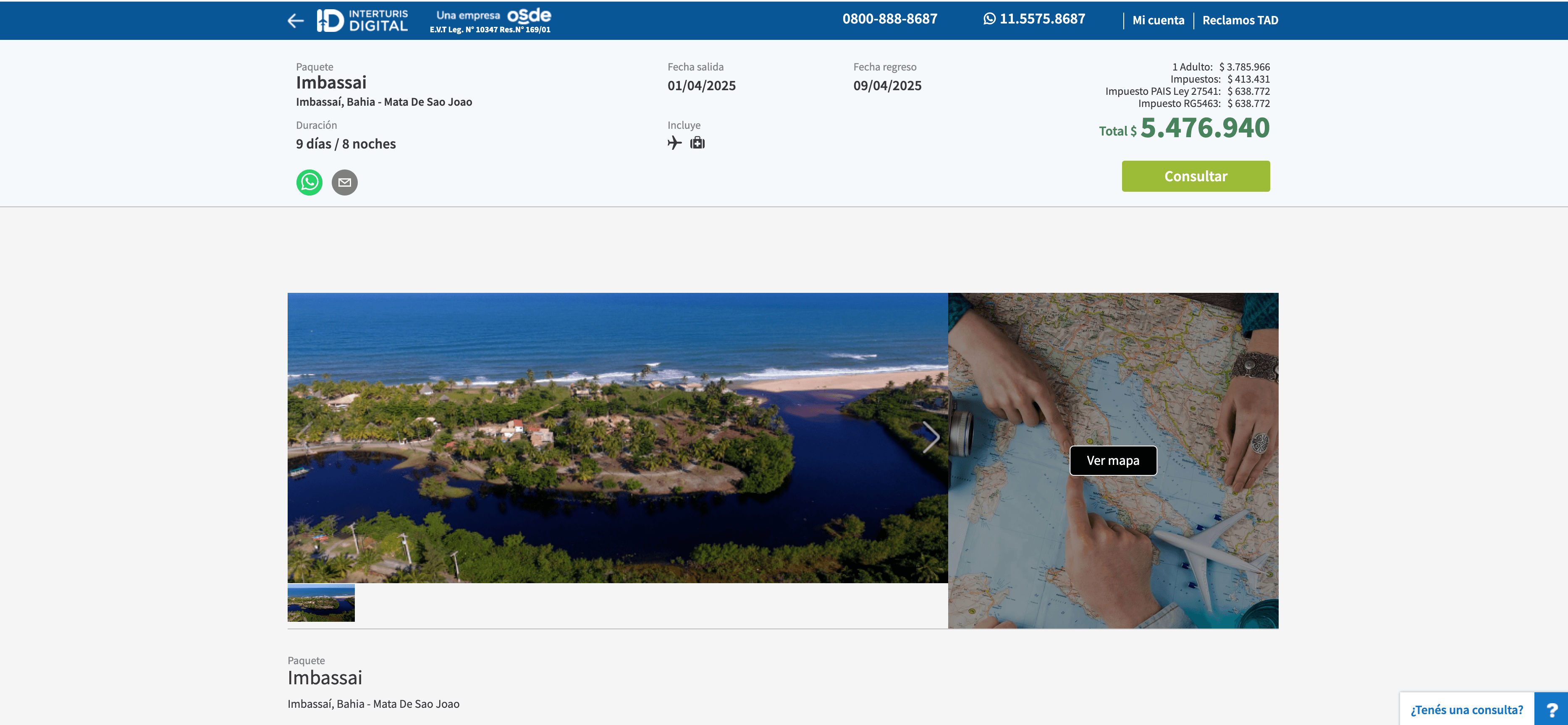 - Go to the destination page, for example: Interturis Travel Package Details.