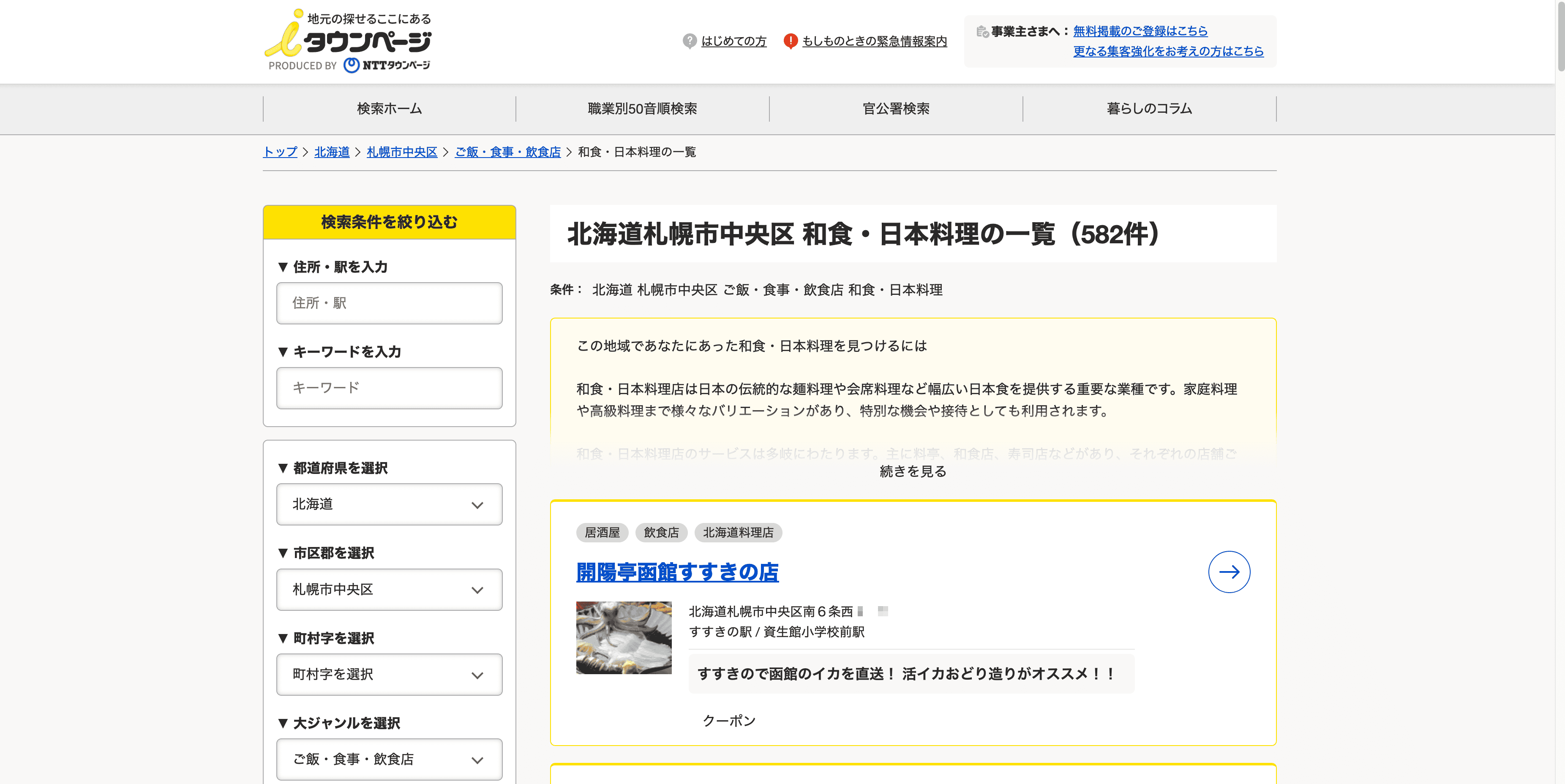 - Navigate to the Japanese Cuisine or Lifestyle Column Page: Go to the iTownPages section you want to scrape.