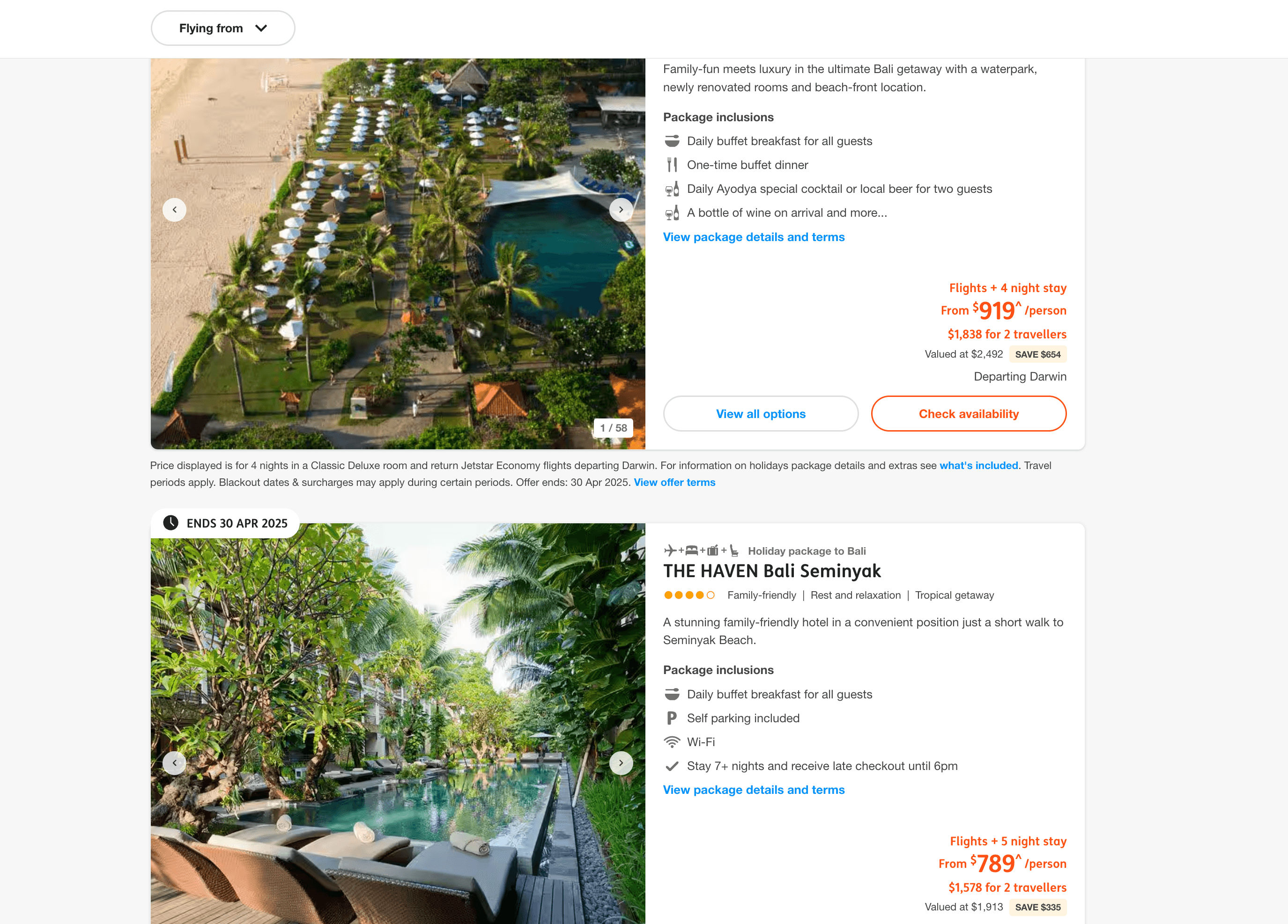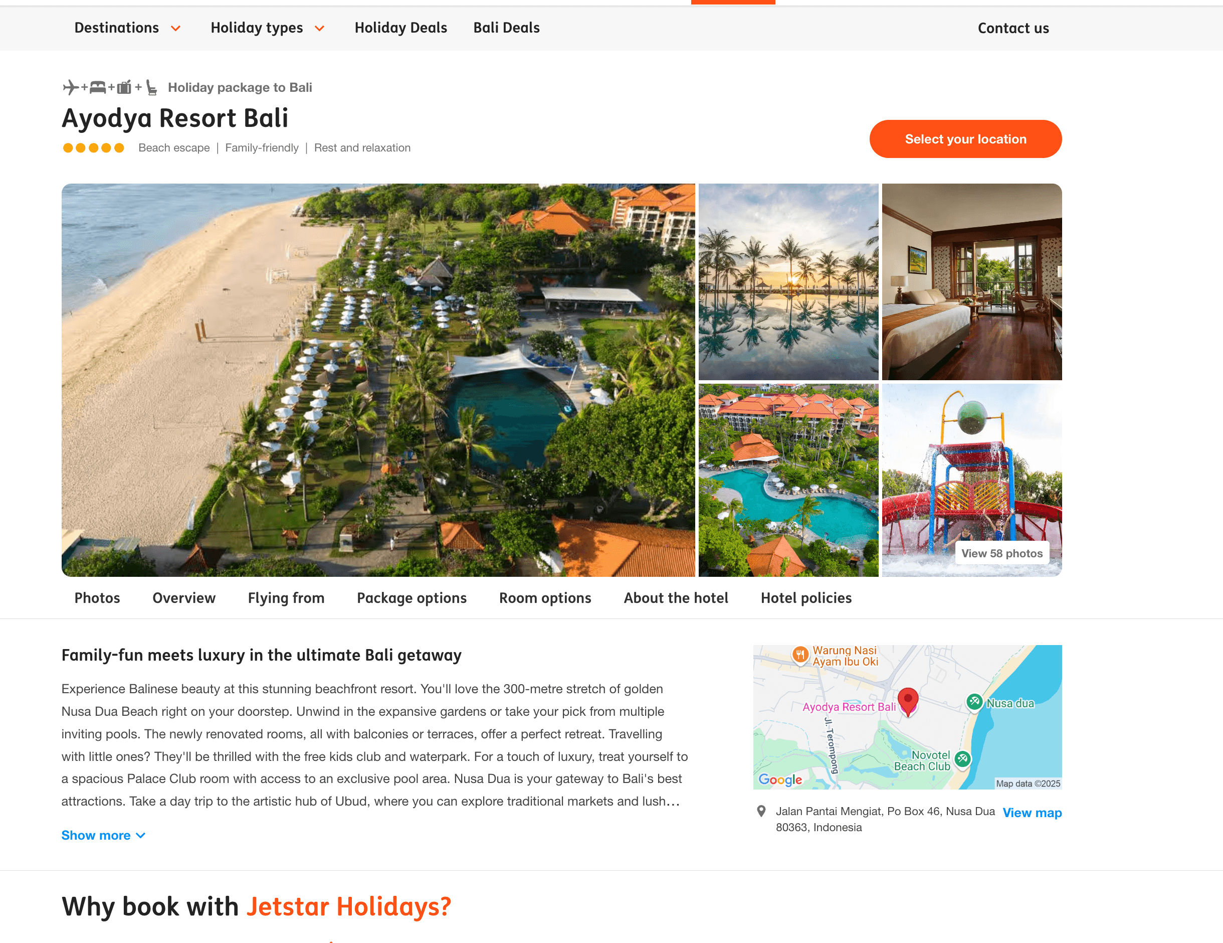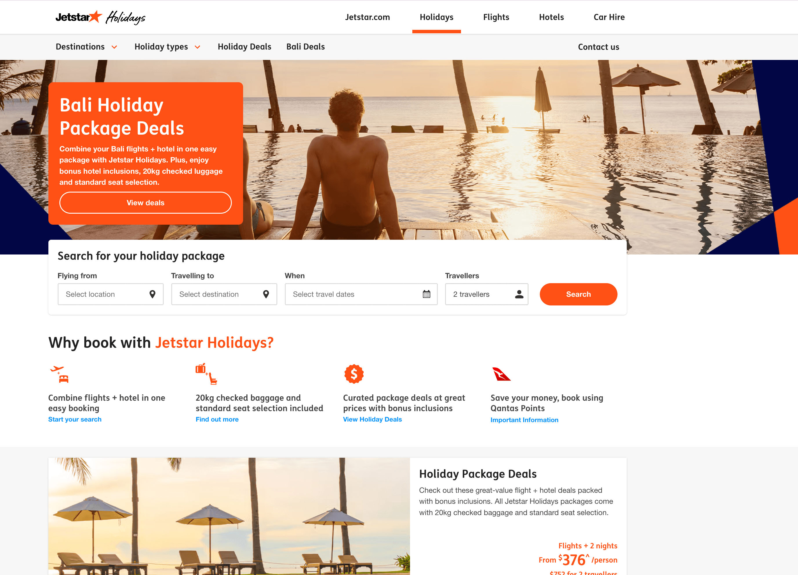 - Go to the destination page, for example: Jetstar Bali Property Package.