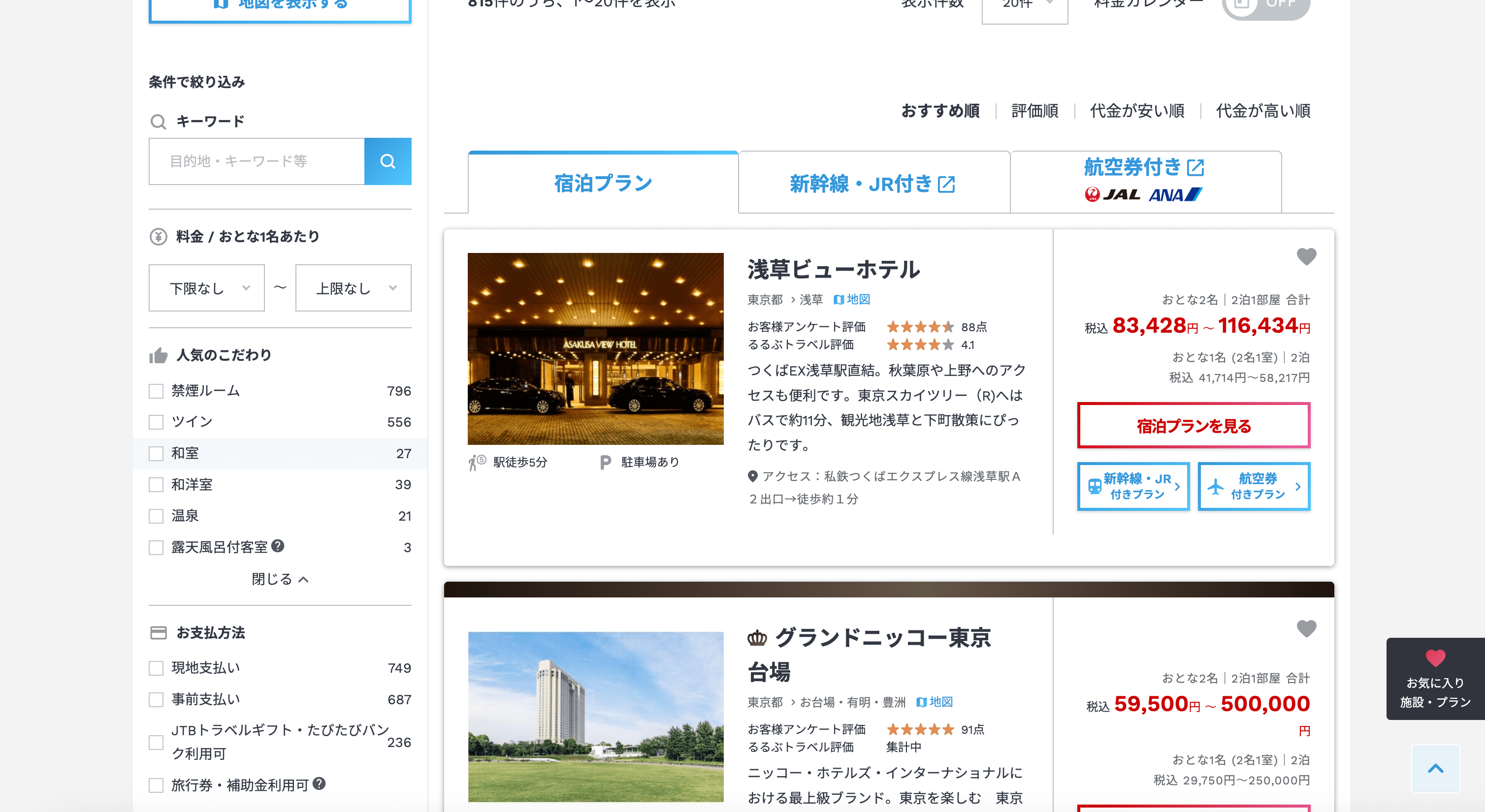 - Go to the JTB Hotels Search Result Page.