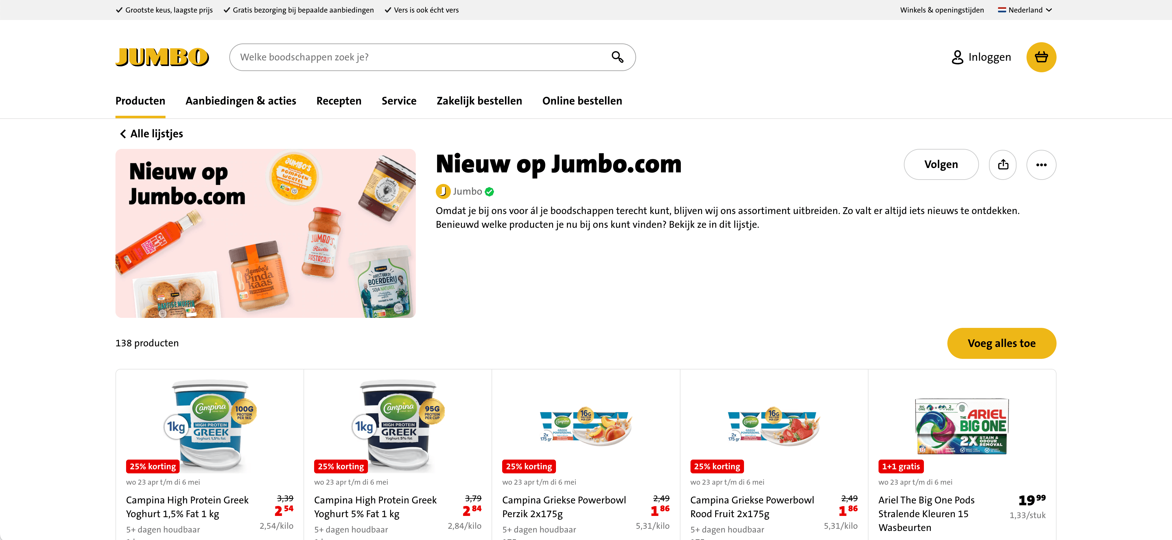 With the Jumbo Product Listing Page Scraper, you can extract all products from a category or search result page. This is ideal for price comparison, assortment analysis, or competitive research.