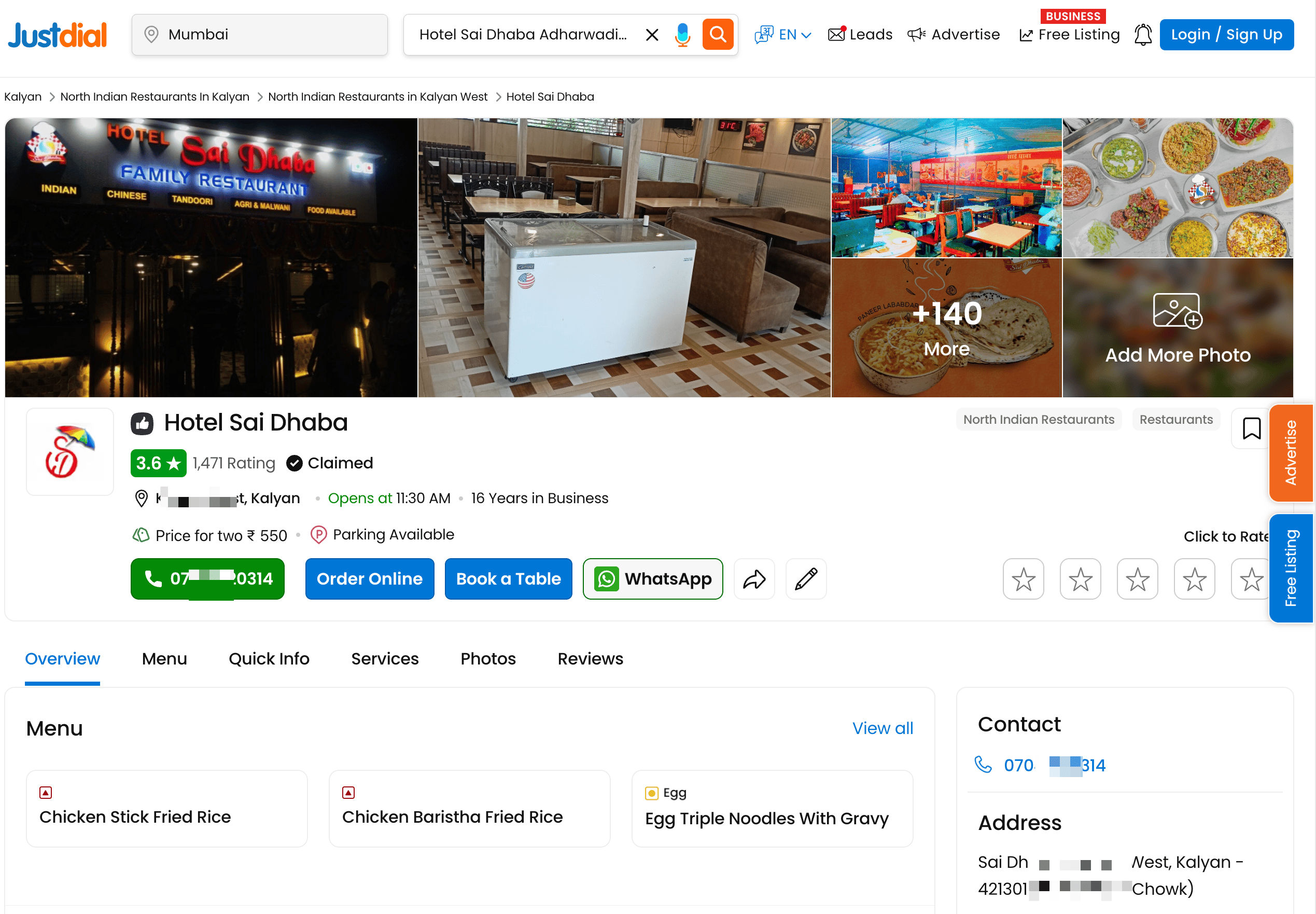 - Go to the destination page, for example: Justdial Business Details.