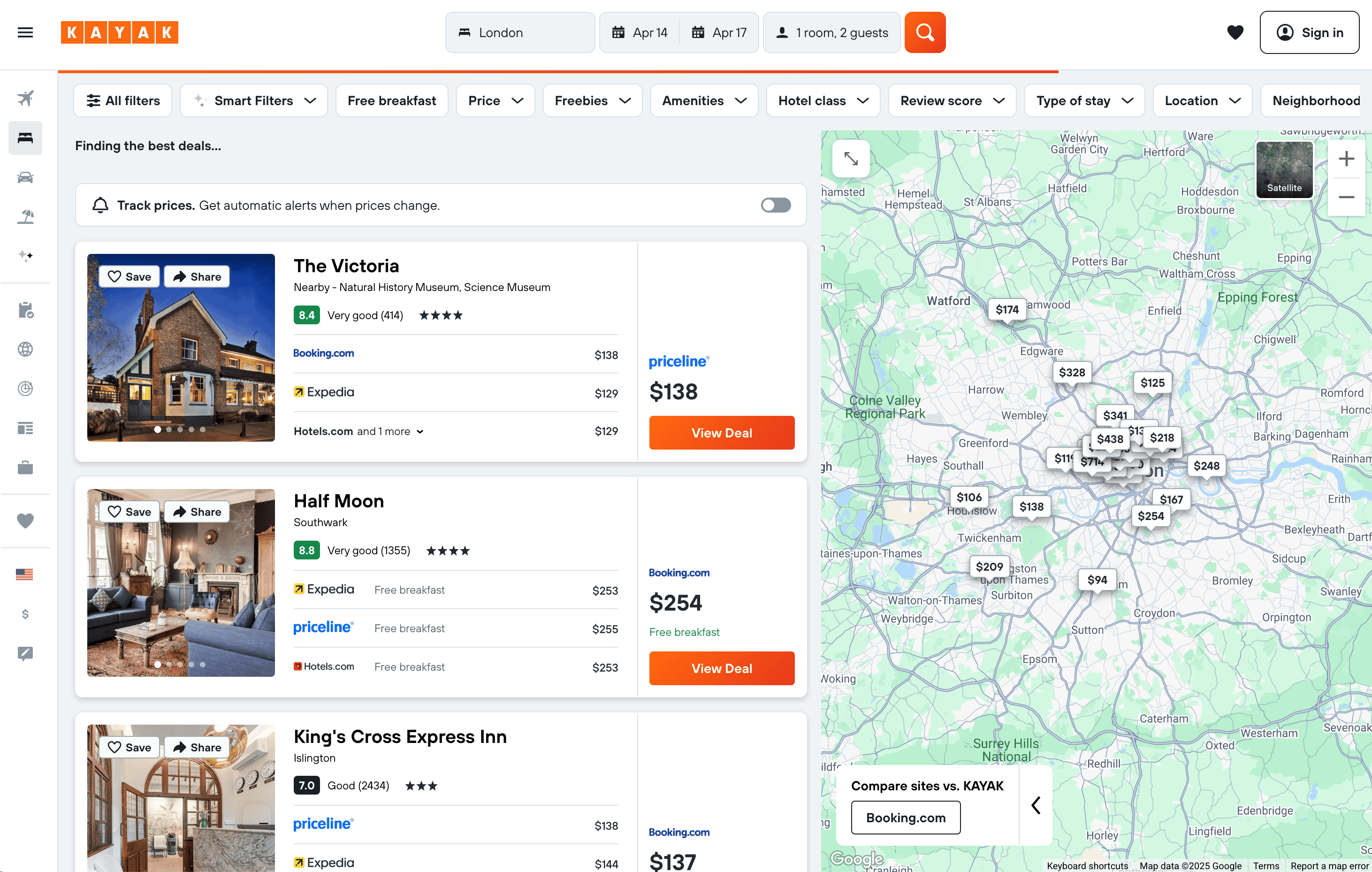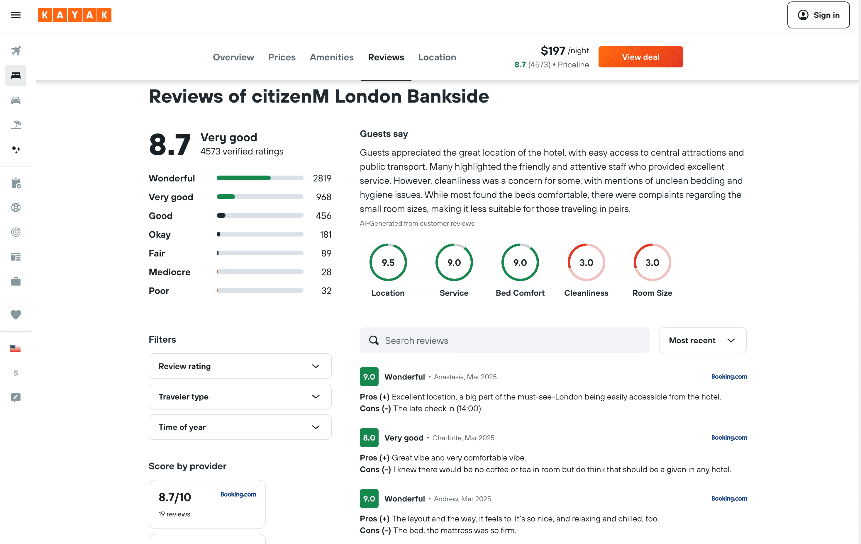 - Go to the destination page, for example: KAYAK Hotel Details.