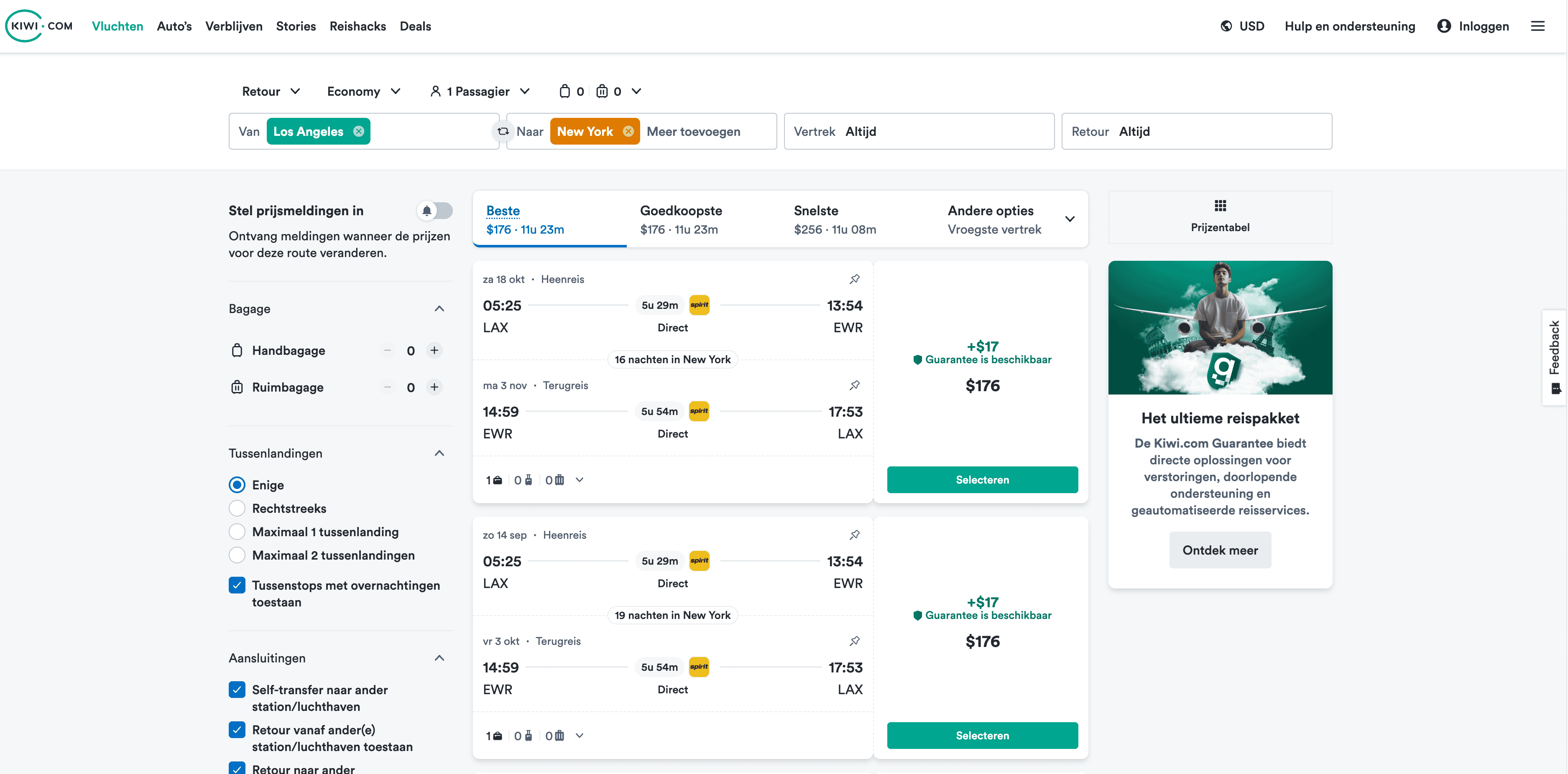 - Go to the destination page, for example: Kiwi.com Flight Search Result.