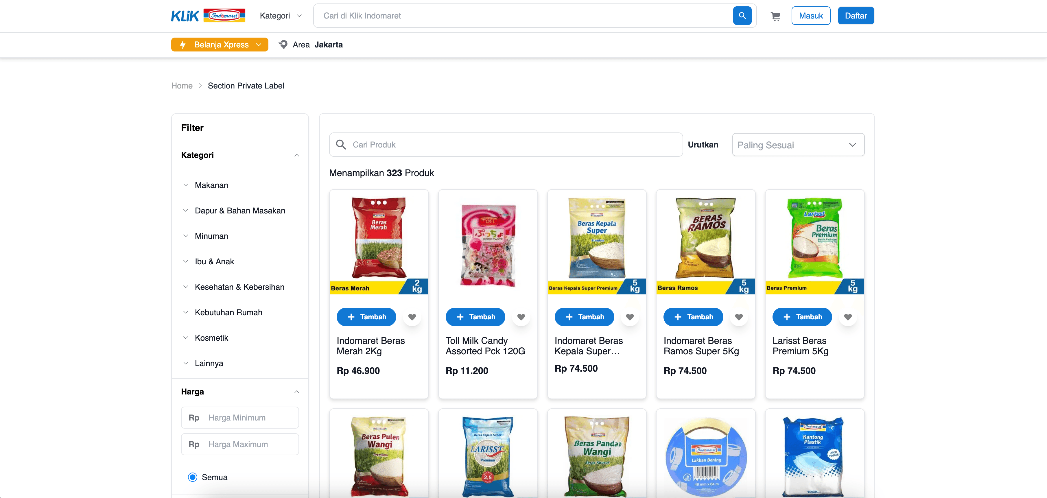 - Go to the destination page, for example: Klik Indomaret Product Listing.