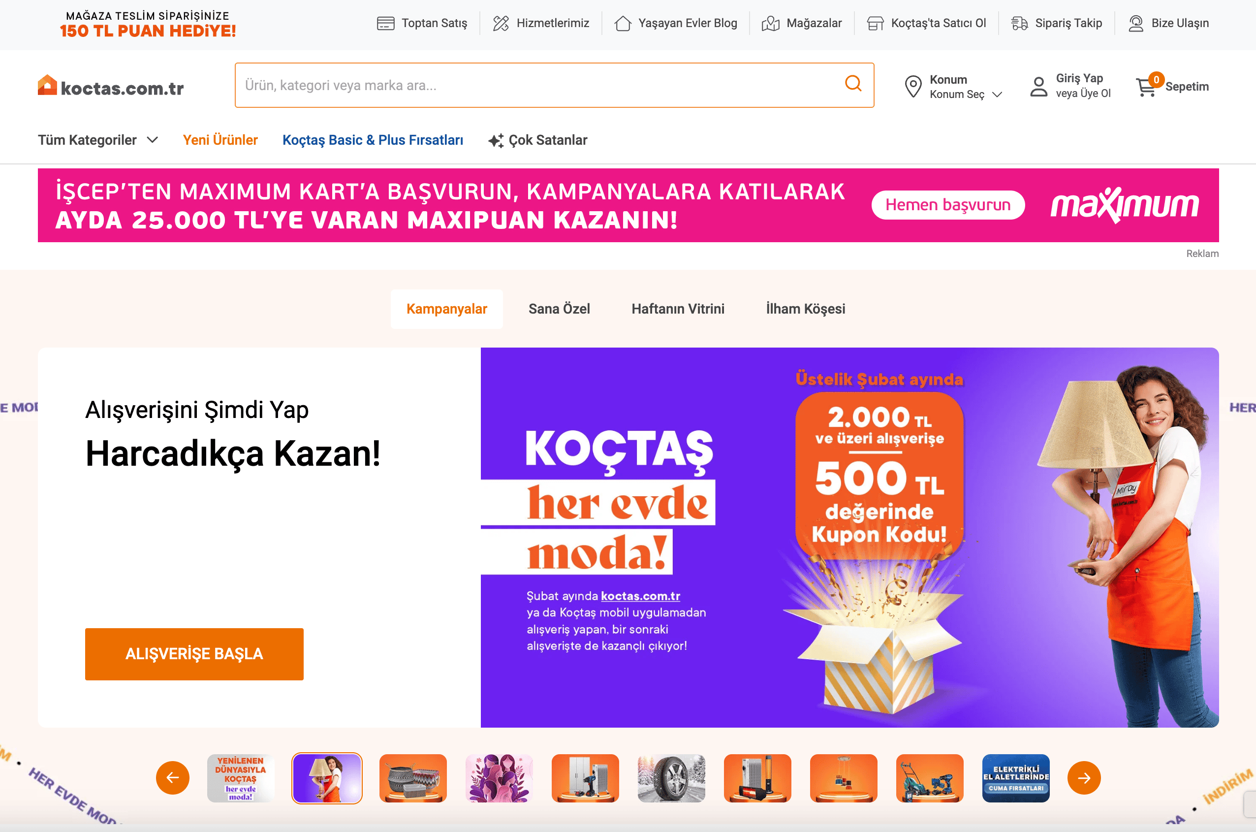 - Navigate to the Koçtaş product listing page.