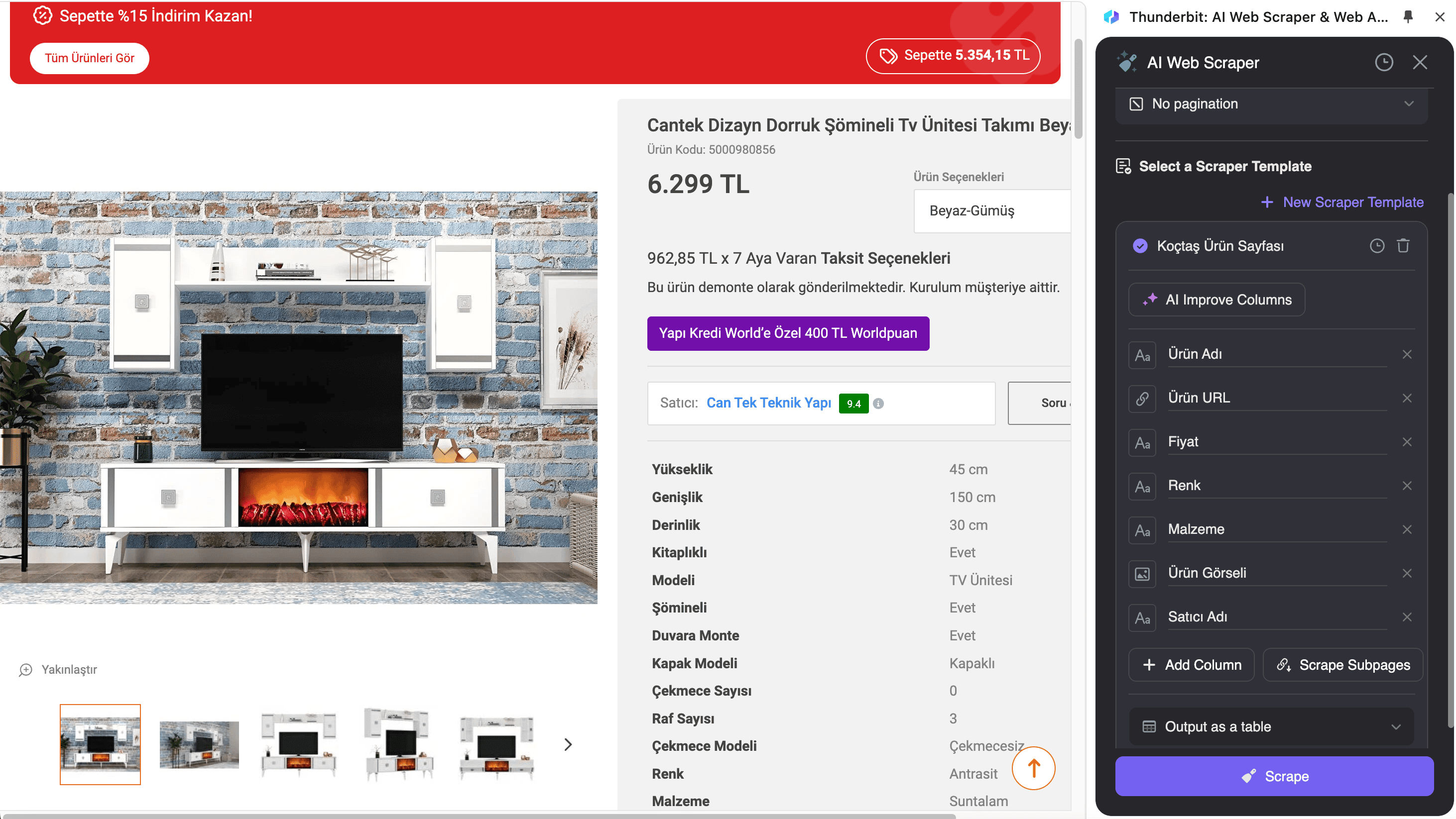 - Navigate to Koçtaş Product or SKU Page: Go to the product listing or SKU page you want to scrape.