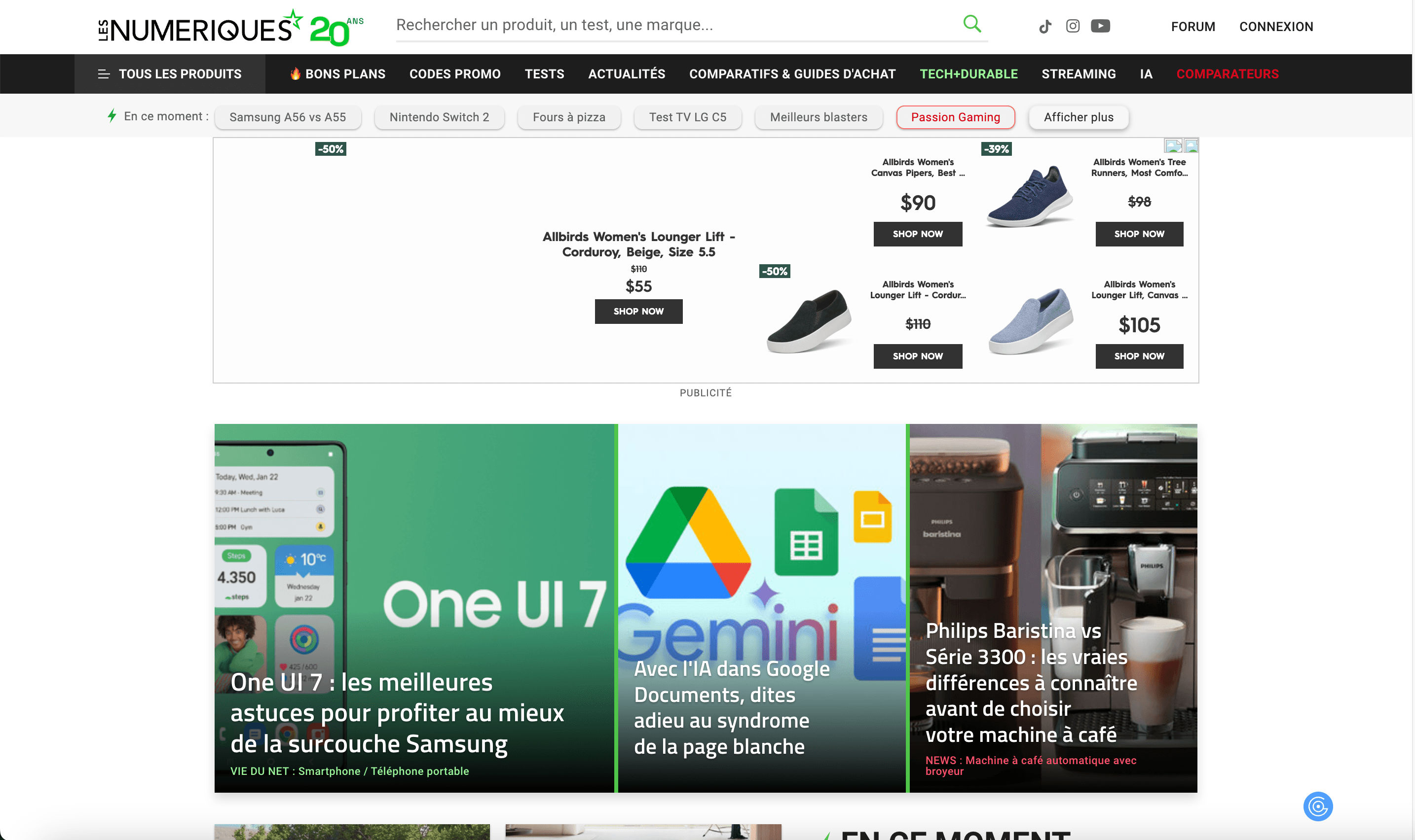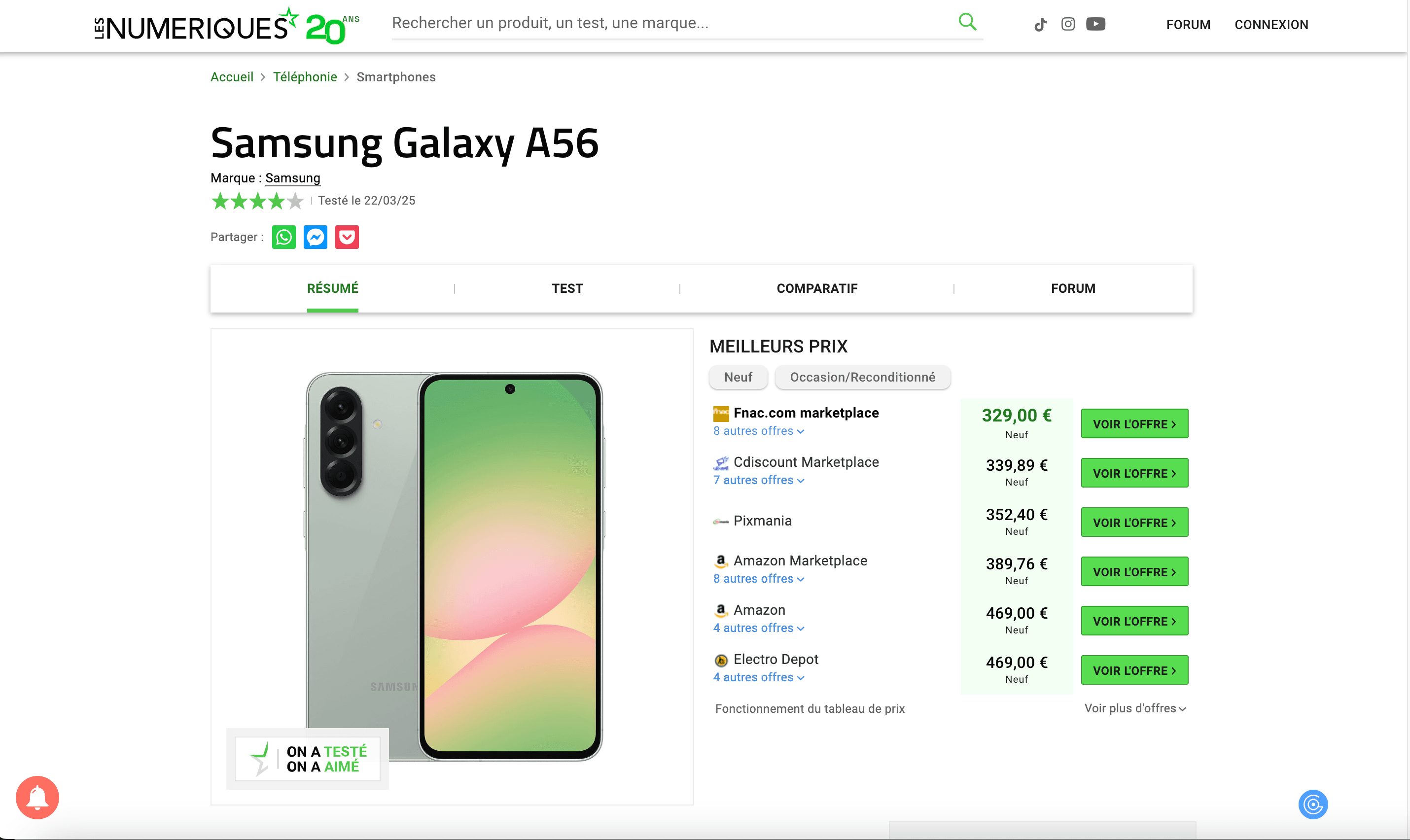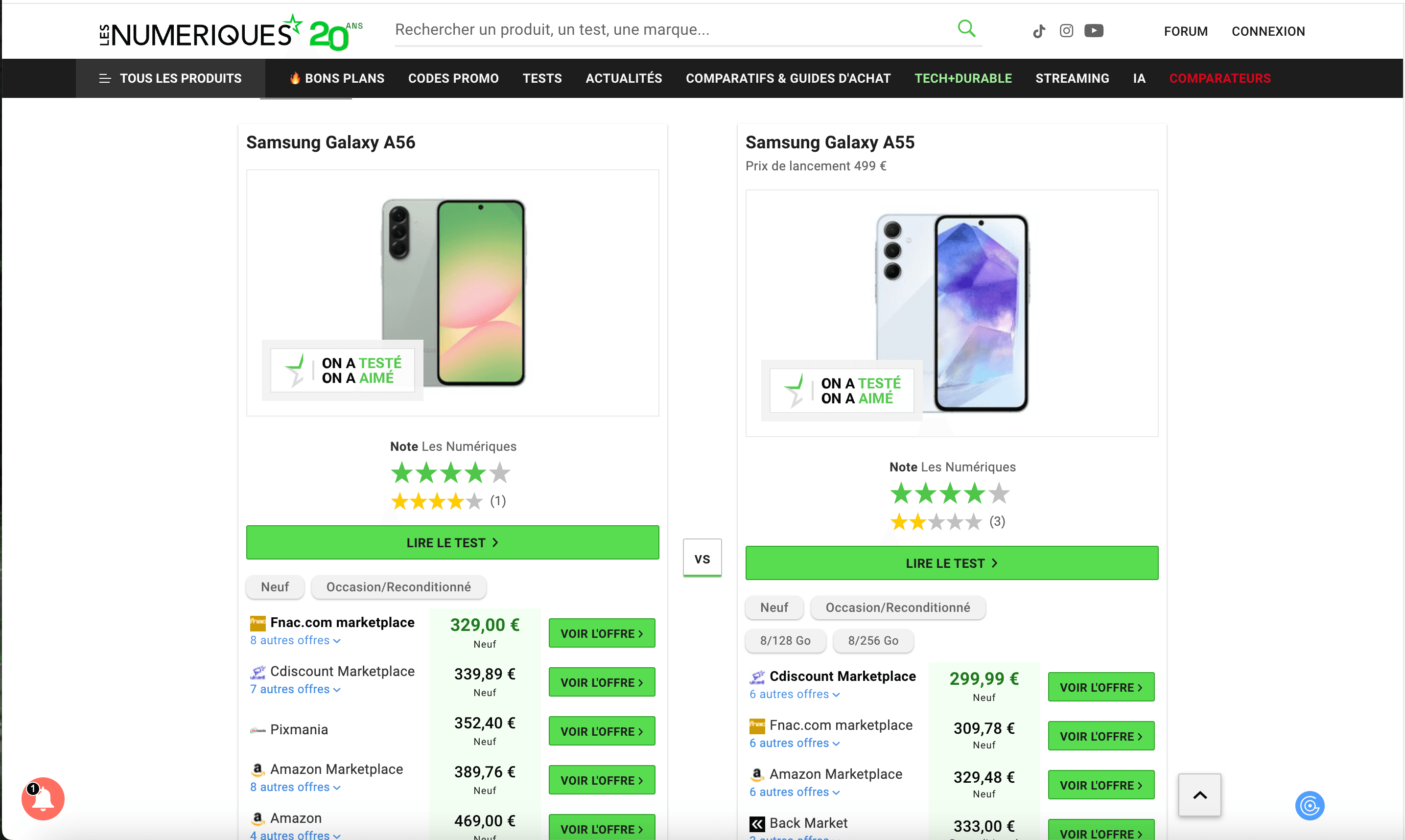 - Navigate to Les Numériques Listings or Details Page: Go to any Les Numériques comparison page or product detail page.
