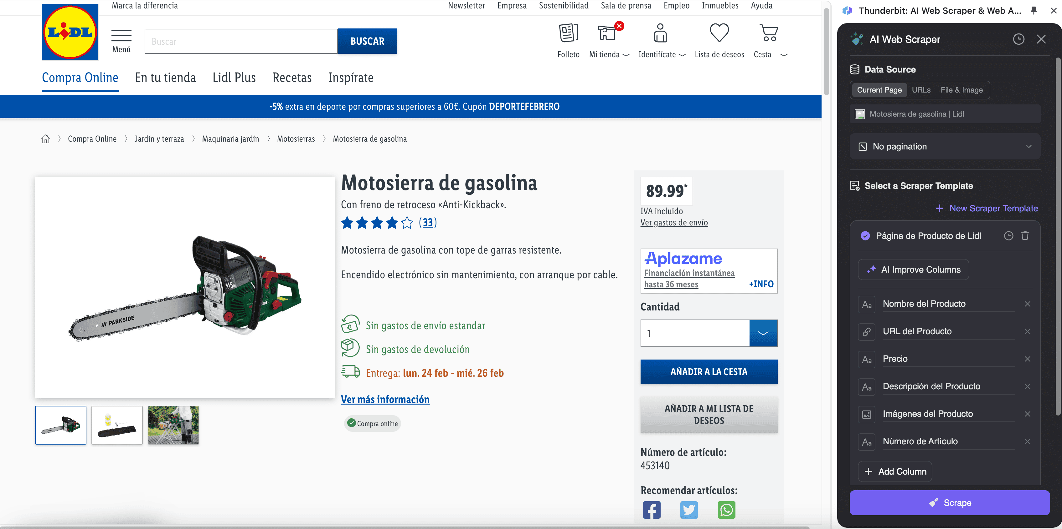 - Navigate to Lidl Product Pages: Go to the Lidl Ski Clothing Product Listing Page or any specific product page you want to scrape.