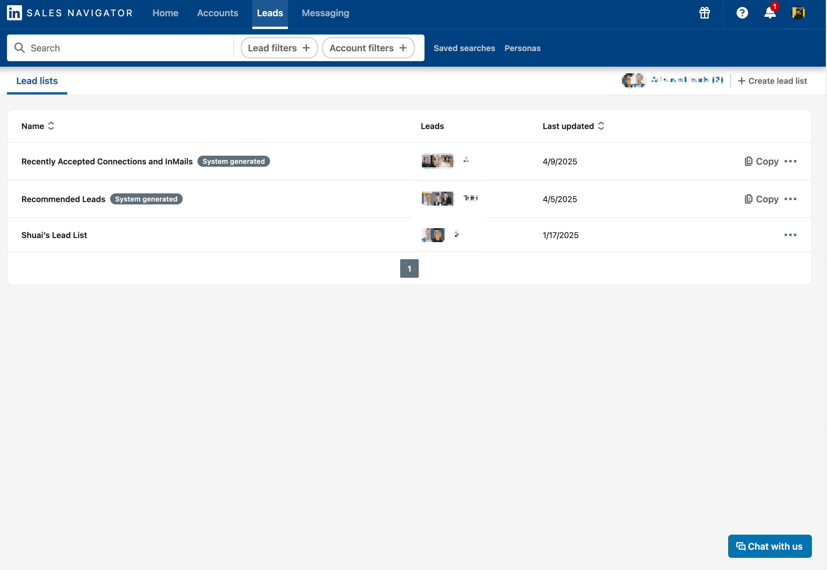 - Go to the destination page, for example: LinkedIn Sales Navigator Leads List.