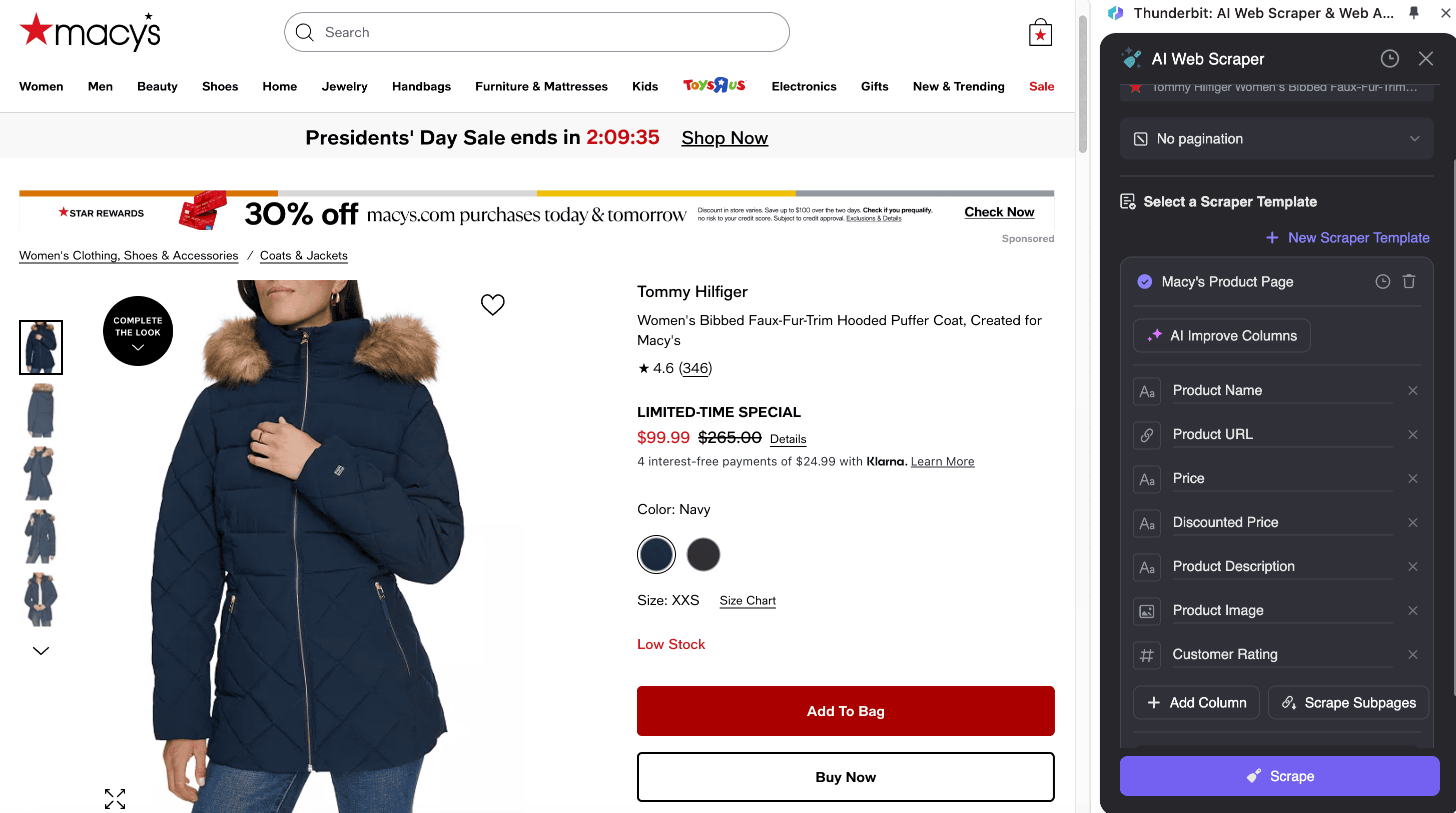 - Navigate to Macy's Product or SKU Page: Go to the Macy's product listing or SKU page you want to scrape.