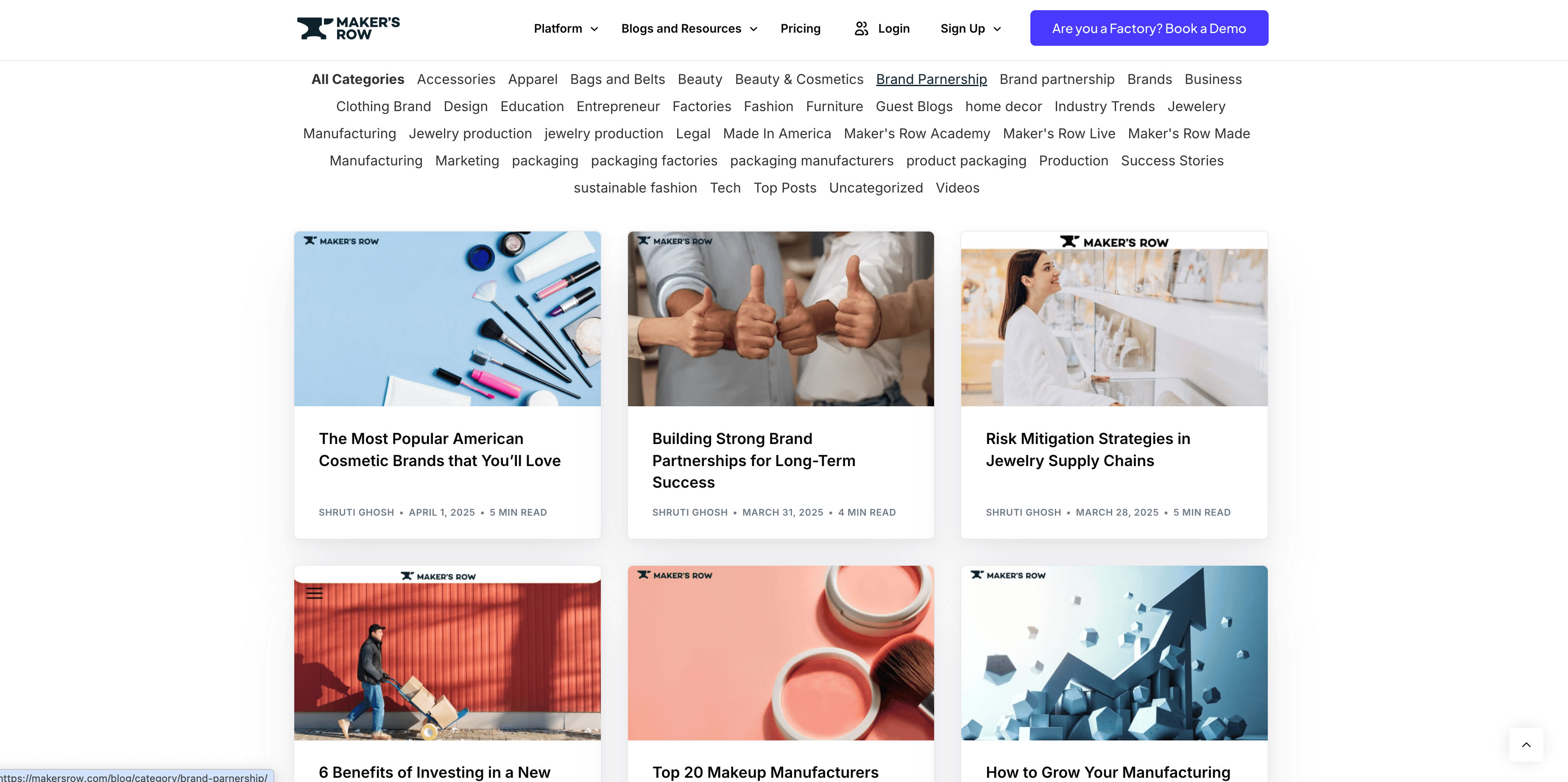 - Go to the destination page, for example: Maker's Row Blog Listing Page.