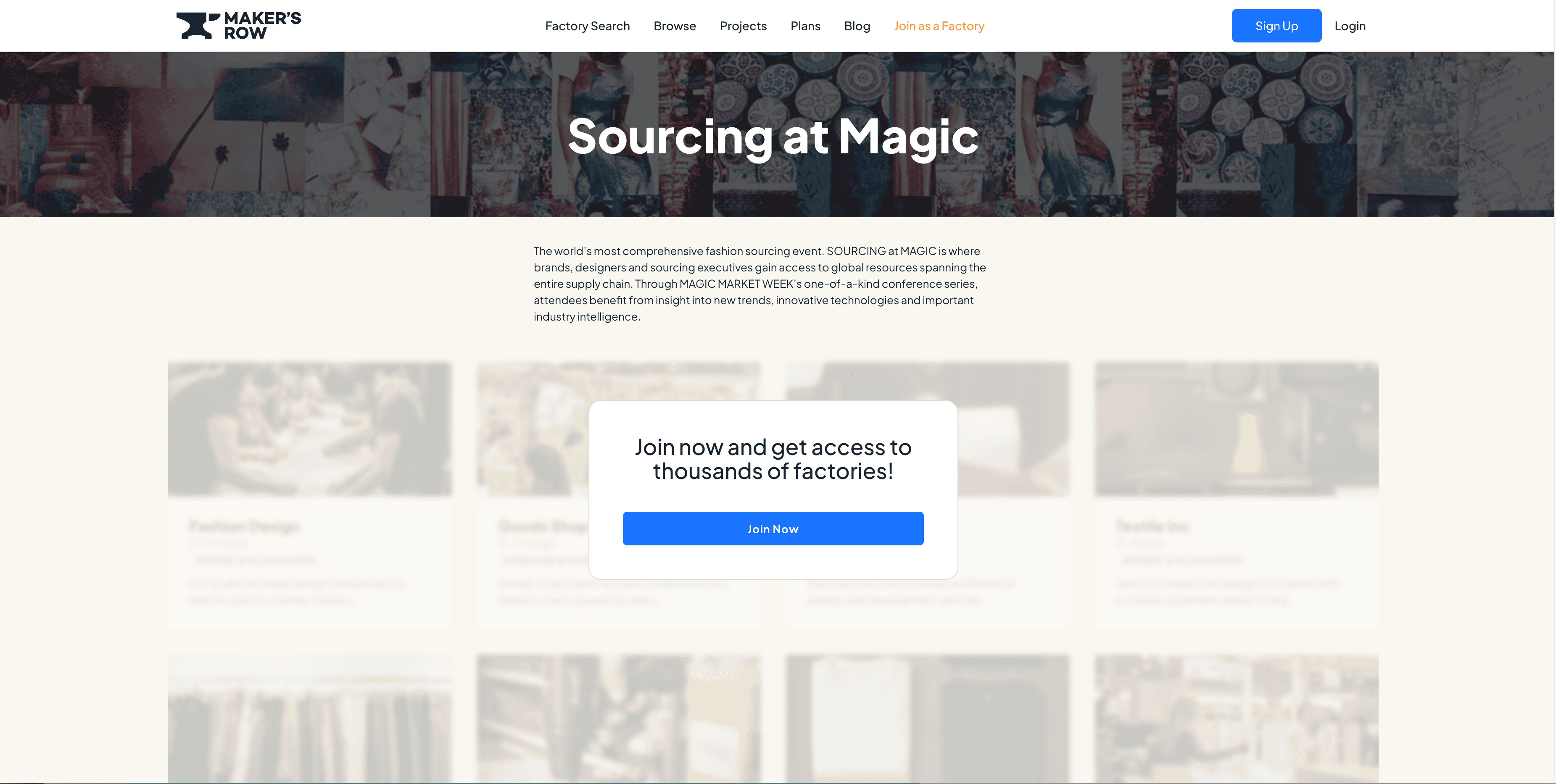 - Go to the destination page, for example: Maker's Row Sourcing Event Page.