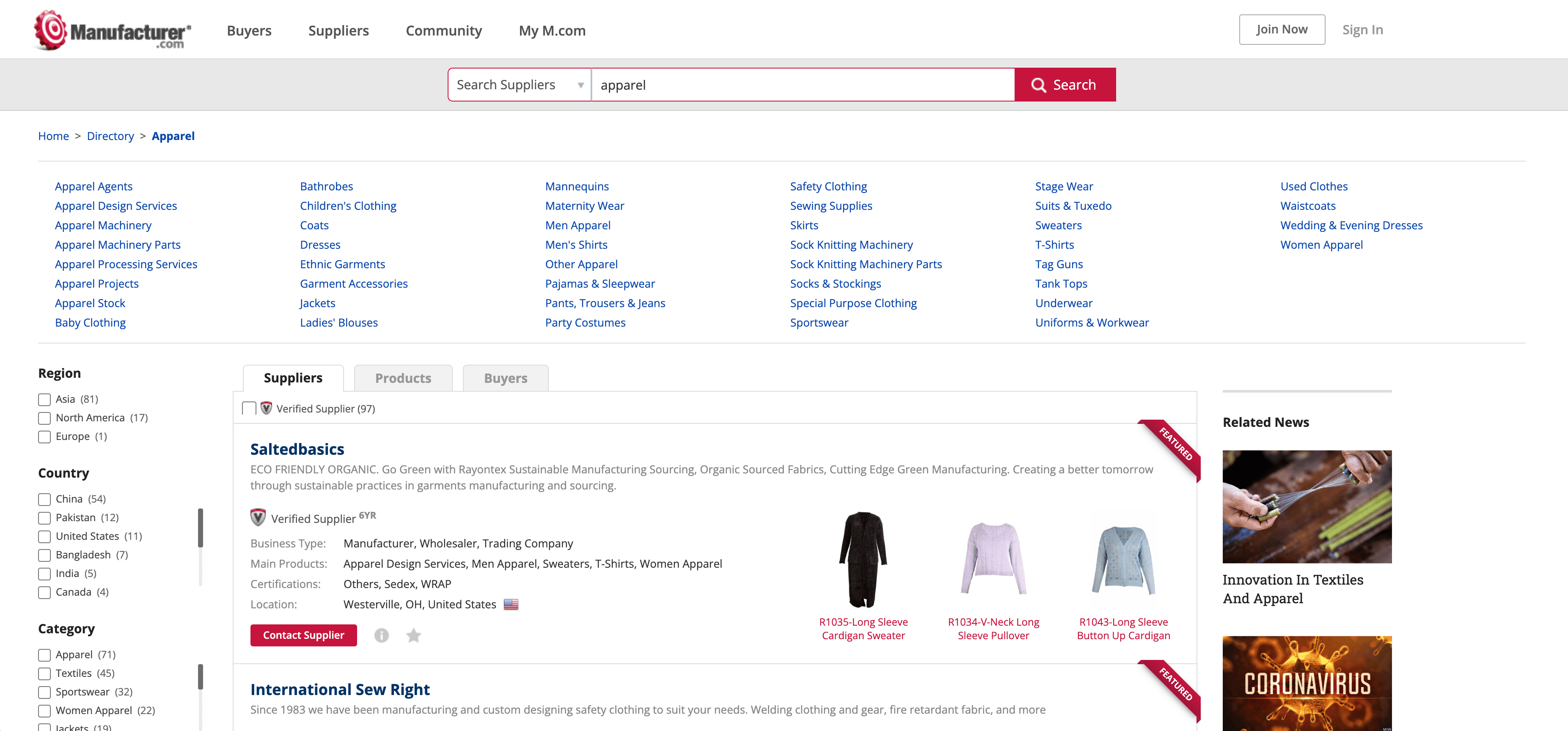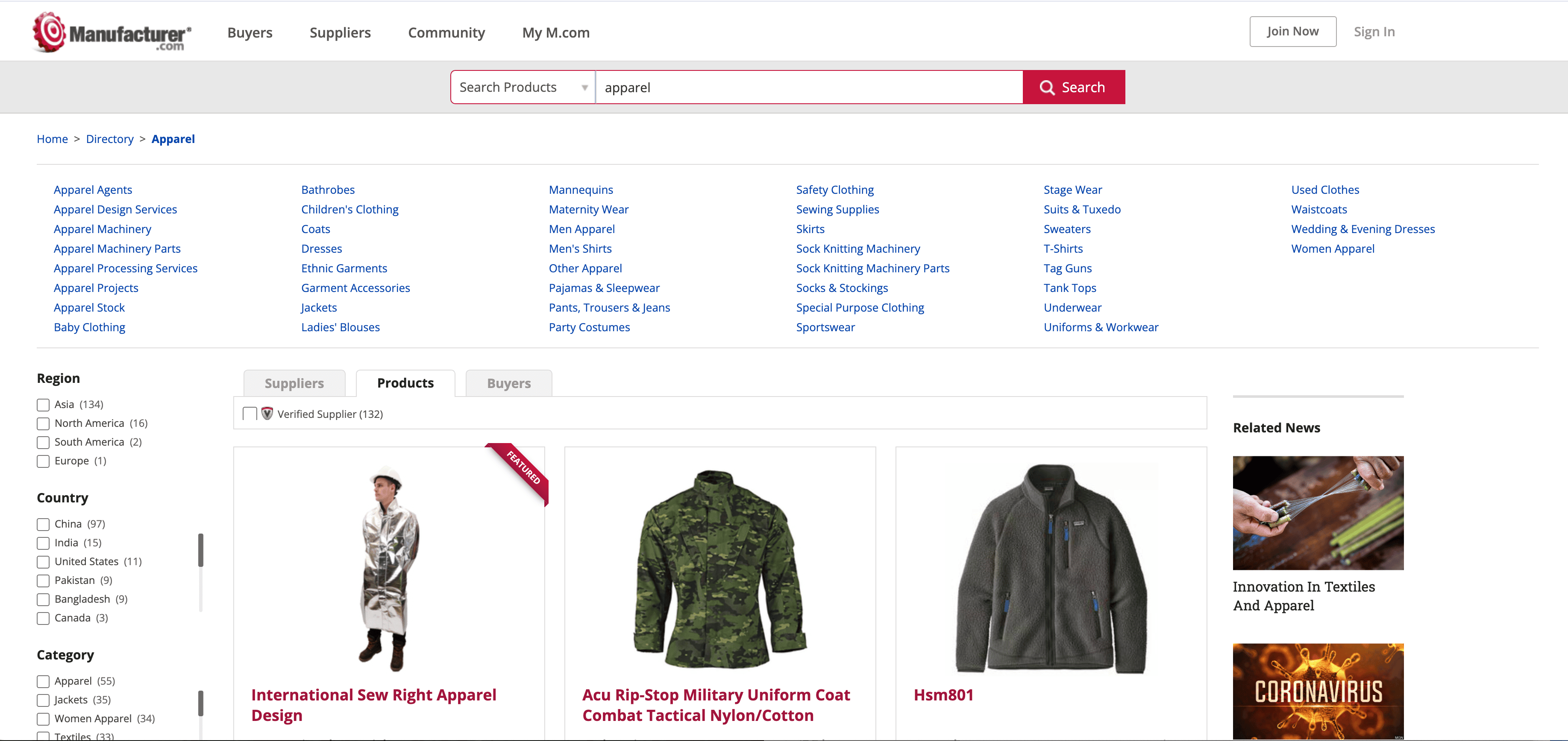 Scrape Manufacturer.com Apparel Product Listing Page