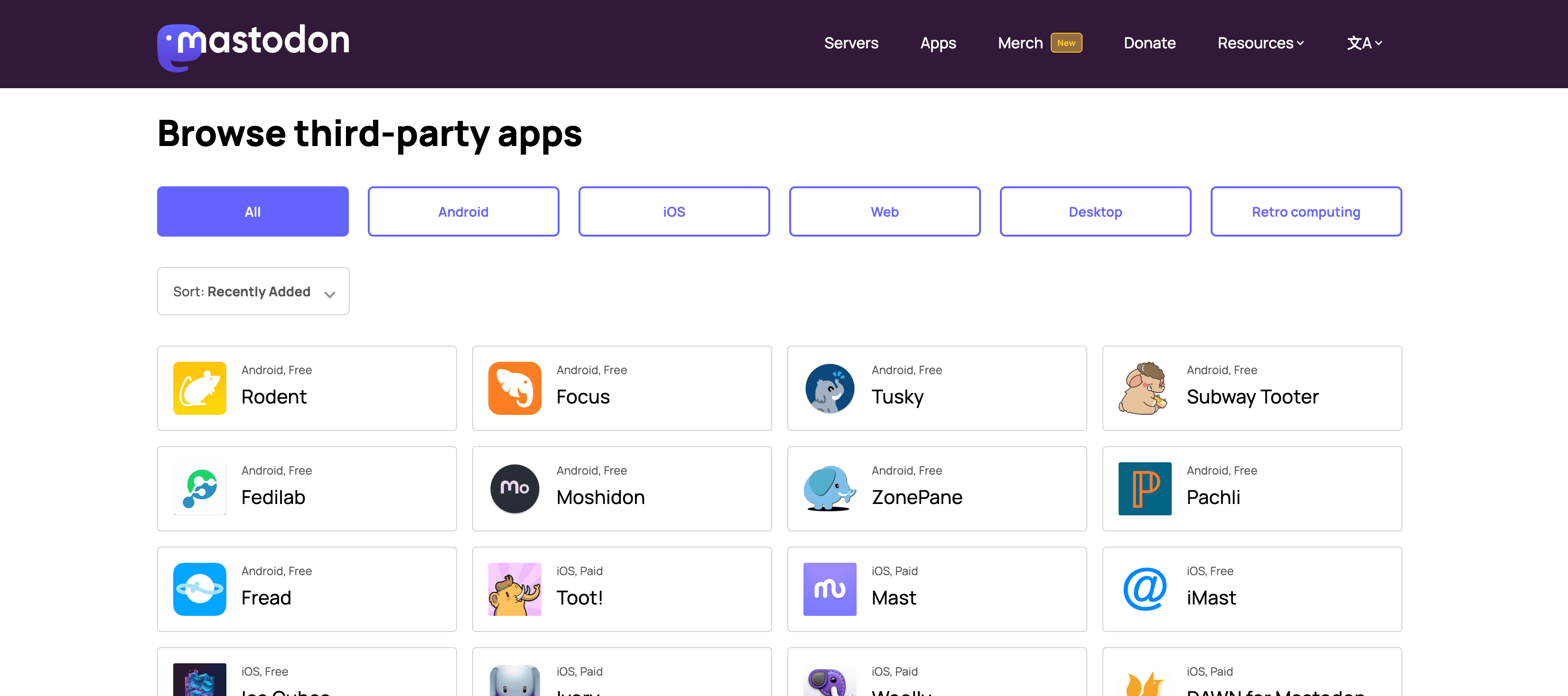 - Go to the destination page, for example: Mastodon Apps Page.