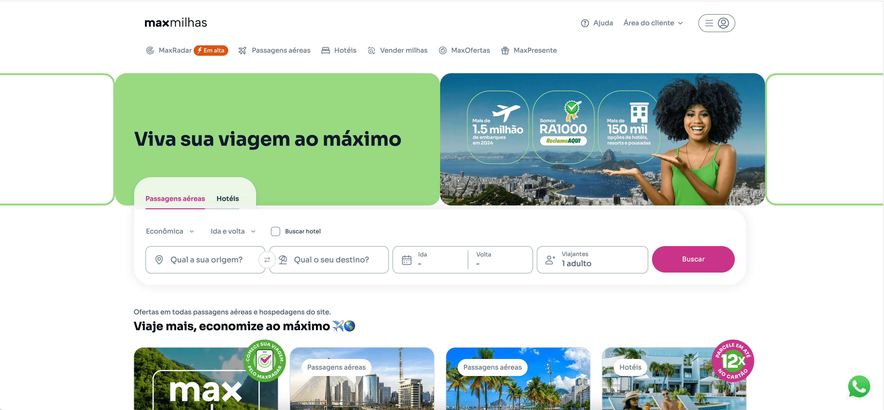 - Navigate to MaxMilhas Hotel Search or Details Page: Go to either the search results or hotel details page.
