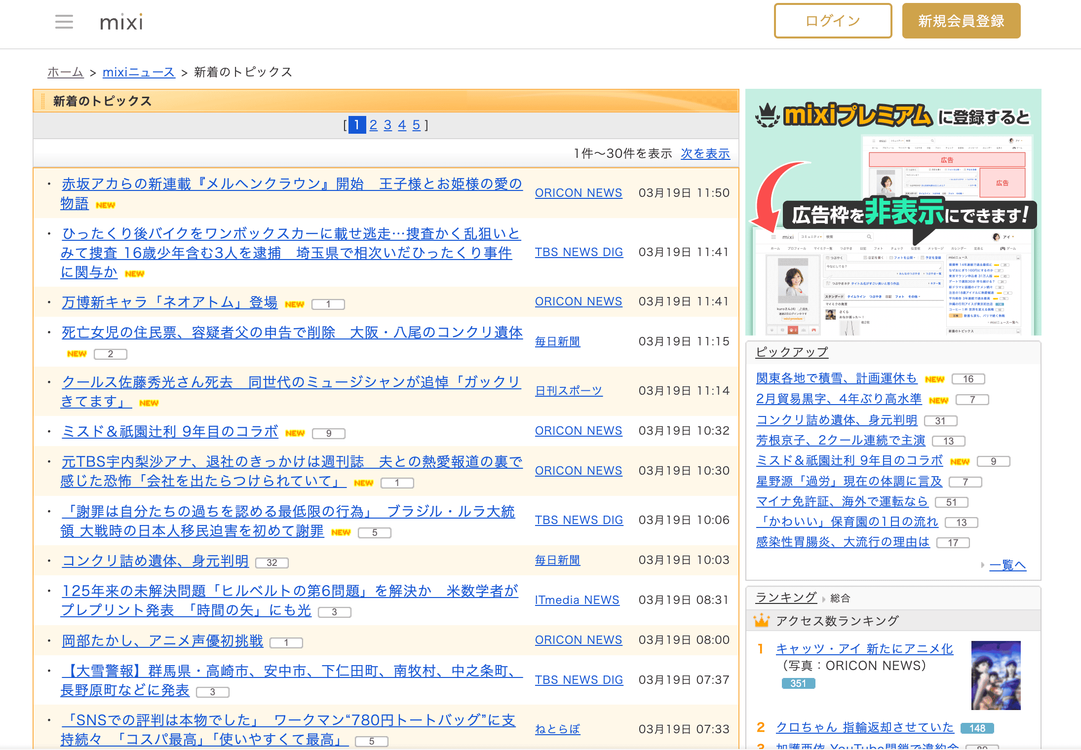 - Go to the destination page, for example: MIXI Community Ranking List.