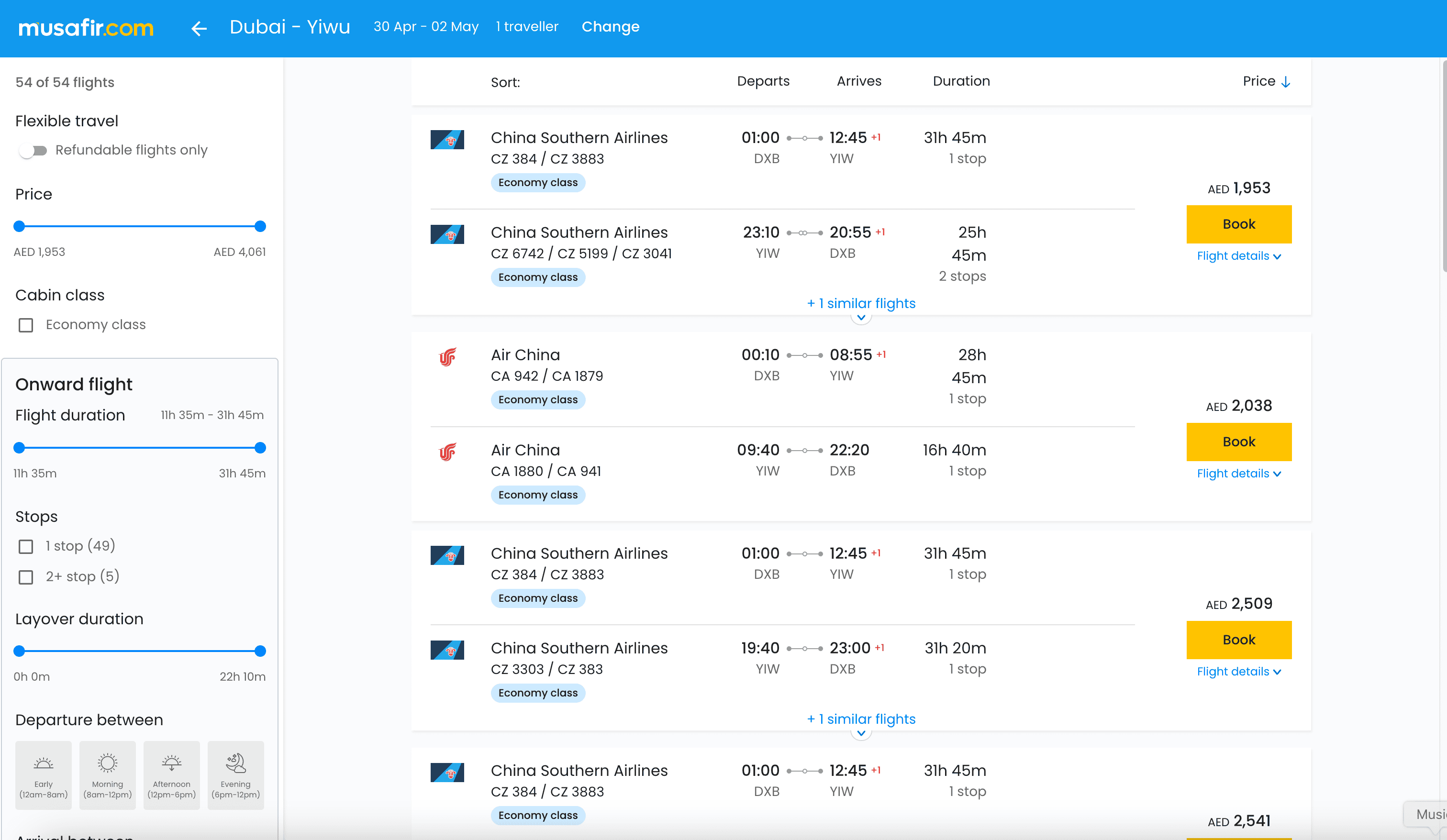 - Go to the Musafir flight search result page.