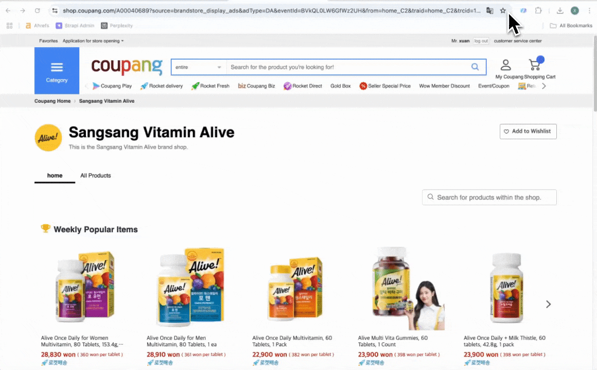 - Navigate to the Naver Shopping page you want to scrape.
